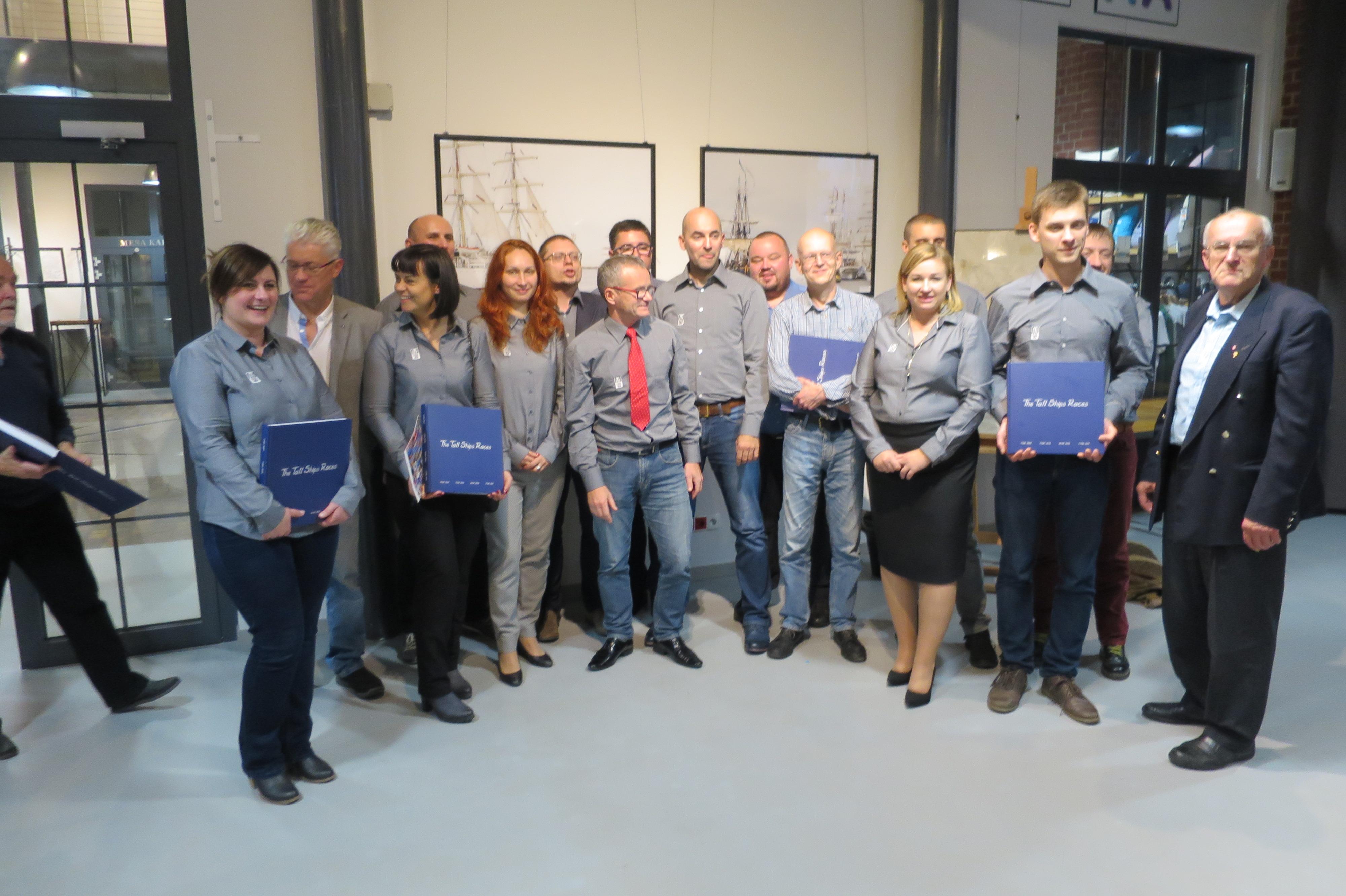 Autorzy zdjęć z rodzinami i przyjaciółmi, dużo gości oraz miłośnicy wielkich żagli –  tłumnie spotkali się w piątek 6 października w Starej Rzeźni, na wernisażu wystawy i „wodowaniu”  niezwykłego albumu fotograficznego, będącego migawkowym spojrzeniem fotografików Szczecińskiego Towarzystwa Fotograficznego i jego sympatyków na wielkie regaty TTSR i ich szczecińskie finały, w latach 2007, 2013, 2015 i 2017. Blisko 200 całostronicowych zdjęć 24 autorów, świetnie oddających nastrój „tolszipów” na morzu i na lądzie, w regatach i w portach, oraz piękno żagli i żaglowców, wyselekcjonowanych z tysięcy kadrów, a wszystko spięte barwnymi tekstami Wiesława Seidlera, w trzech wersjach językowych – polskiej, niemieckiej i angielskiej. Do tego duży format, twarda oprawa i nienaganny wydruk, to niewątpliwe walory całego wydawnictwa…