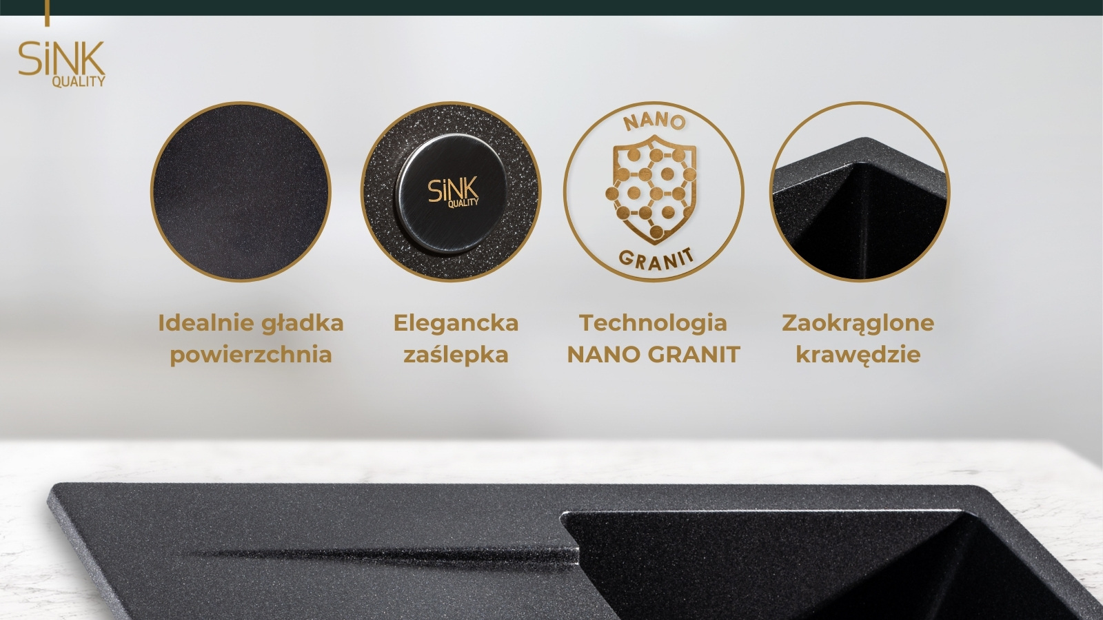 Zlew wykonany z granitu jest nie tylko estetyczny, ale i bardzo trwały. Utrzymanie go w czystości jest łatwe i nie wymaga stosowania jakichś wyszukanych środków. Lekkie zabrudzenia usuniemy przy użyciu gąbki, płynu do mycia naczyń, wilgotnej ścierki i papierowego ręcznika, do większych zabrudzeń możemy użyć standardowych środków do czyszczenia. Do jego impregnacji świetnie nadaje się zwykły olej roślinny. Musimy pamiętać o tym, by nie stosować ostrych przyborów do mycia, które mogłyby niepotrzebnie zarysować powierzchnię. Zlew granitowy SinkQuality wyróżnia estetyczny design, który  się sprawdzi w nowoczesnej i klasycznej przestrzeni. Wybór jedno czy dwukomorowego zlewu jest mocno uzależniony od naszego trybu życia. Zastosowanie technologii produkcji  z wykorzystaniem kruszywa granitowego i żywicy zapewnia komfort korzystania ze zlewozmywaka przez długie lata.