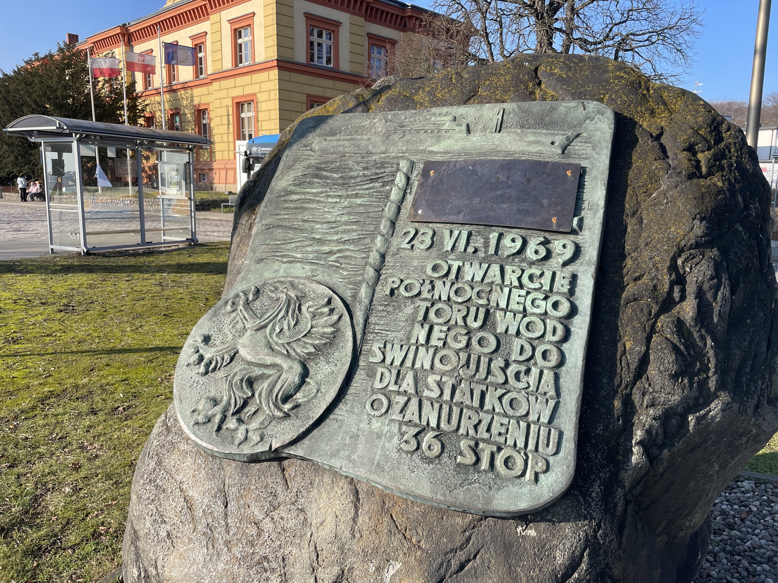 Na skwerze przed świnoujskim budynkiem Kapitanatu Portu została pamiątka po byłym PRL-u. W 1969 roku postawiono tu dwa kamienie i kotwicę. Na jednym z kamieni umieszczono tablicę poświęconą XXV leciu PRL-u oraz związanemu z uczczeniem tego jubileuszu otwarciem północnego toru wodnego do Świnoujścia dla statków o zanurzeniu 36 stóp. Otwarcie toru wodnego miało miejsce 23 czerwca 1969 roku. Było to duże wydarzenie w regionie, więc postanowiono uwiecznić ten fakt wmurowując tę tablicę w głaz, który został wyciągnięty podczas pogłębiania drogi do portu.