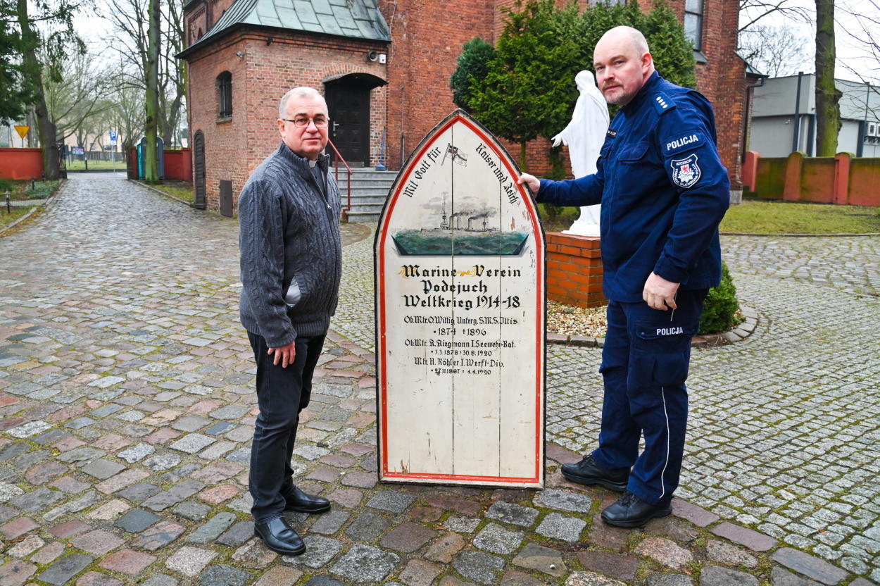 Policjanci odzyskali zabytkową tablicę upamiętniającą zmarłych marynarzy