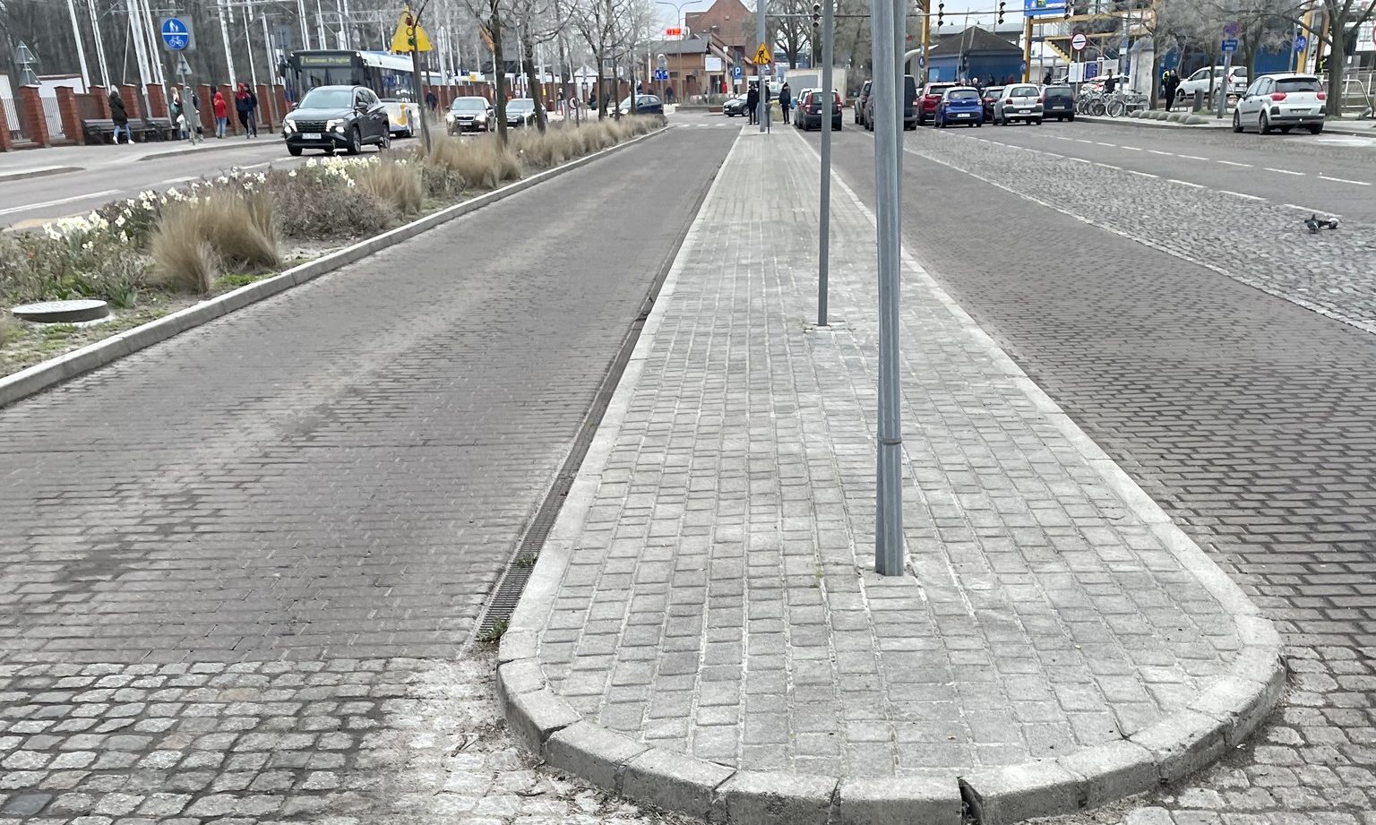 Pięknie posadowiony krawężnik na łuku wyspy. Cóż za beznadziejny i przypadkowy inspektor – odbierający robotę.
