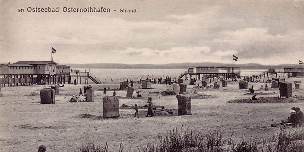 Największą atrakcją Osternothafen było jednak kąpielisko morskie. Szerokie, piaszczyste plaże oraz najcieplejsza woda na wybrzeżu, szybko stały się wizytówką miejscowości! Kąpielisko podzielone było na trzy sektory, zgodnie z obowiązującymi w całej Rzeszy Niemieckiej moralnymi obyczajami – damski, męski oraz dla całych rodzin. W każdej części znajdował się budynek łazienek plażowych, które mieściły w sobie przebieralnie oraz schowki na rzeczy osobiste wczasowiczów. Nie były one oczywiście tak majestatyczne jak łazienki po zachodniej stronie cieśniny- mniejsze, bardziej kameralne idealnie pasowały do bajecznego Chorzelina. Charakterystycznym punktem była Hala Plażowa (Strand-Halle) – niewielki, drewniany budynek, w którym mieściła się wypożyczalnia wiklinowych koszy – foteli chroniących przed słońcem oraz morską bryzą. Najbardziej jednak obleganym miejscem była mieszcząca się nieopodal wejścia na plażę słynna restauracja Branderburg, w której przesiadywali głównie popijający zimne piwo mężczyźni, ćmiąc fajki dyskutując przy tym o polityce. Wschodnie kąpielisko miało jeszcze jeden kluczowy walor – piękne widoki. Turyści leżąc na plaży mogli podziwiać statki oraz okręty Cesarskiej Marynarki Wojennej stojących na świnoujskiej redzie lub wpływające do portu pozostawiając po sobie chmury dymu wyrzucanego przez kominy tych stalowych kolosów. Zapierającym widokiem był również najdłuższy kamienny falochron mierzący 1492 metry długości, o które rozbijały się morskie fale Zatoki Pomorskiej.