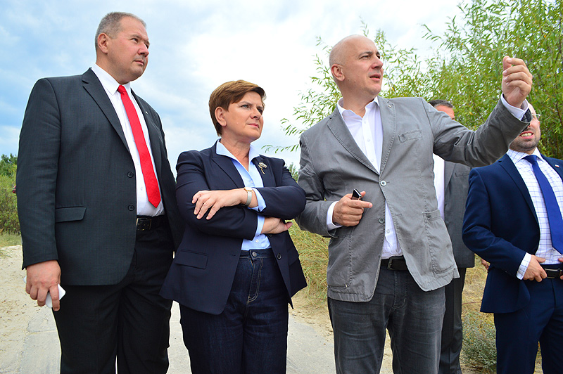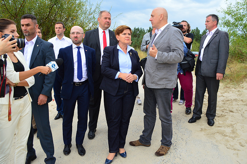 Później Beata Szydło przeniosła się przed falochron. Poseł Joachim Brudziński tłumaczył kandydatce na premiera dlaczego niemiecko-rosyjski gazociąg na dnie Bałtyku uniemożliwia dostęp dużych statków do portu w Szczecinie i Świnoujściu.