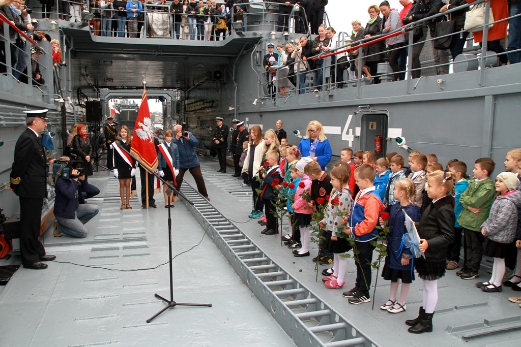 Dzisiaj, piątek 2 października, na pokładzie okrętu ORP „TORUŃ” pierwszoklasiści ze szkoły podstawowej nr 1 im Marynarki Wojennej w Świnoujściu zostali uroczyście pasowani na ucznia. Przyrzeczenie sumiennej nauki oraz dbałości o dobre imię szkoły i ucznia przypieczętowane zostało dotknięciem ramion uczniów kordzikiem oficerskim Marynarki Wojennej oraz potwierdzone pamiątkowymi dyplomami.