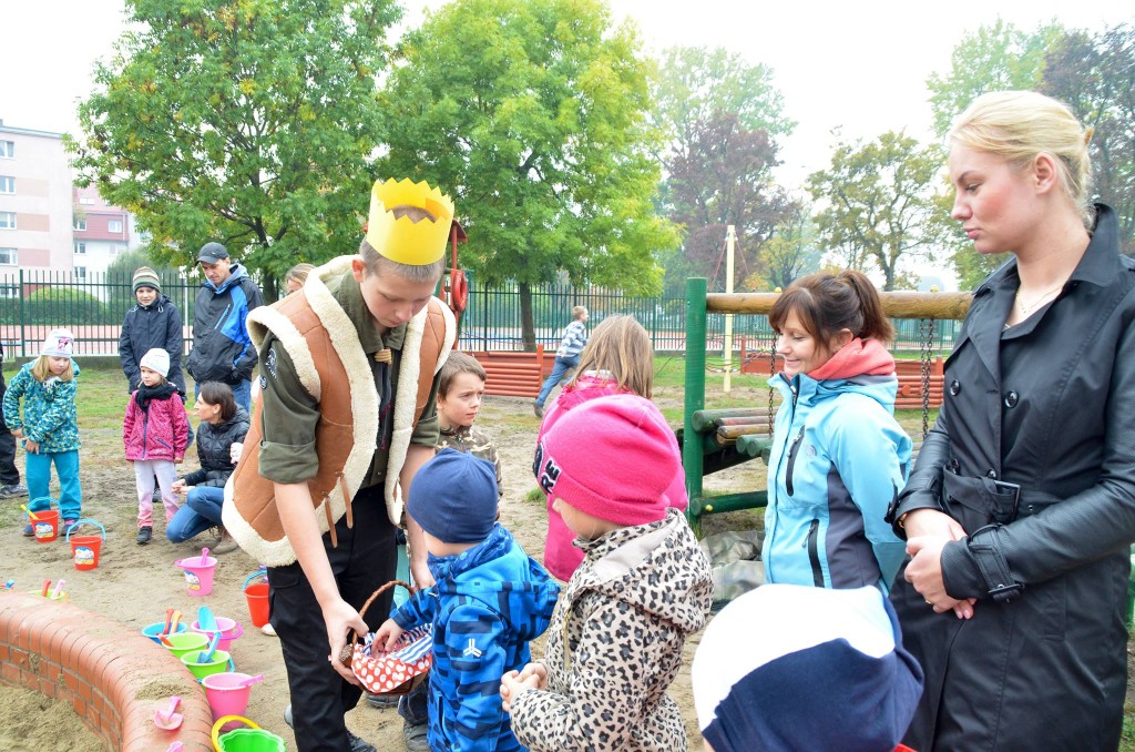 Przedszkolaki zostały uroczyście powitane przez Króla Ziemniaka, który wraz z harcerskim dworem zaprosił je do zabaw integracyjnych.