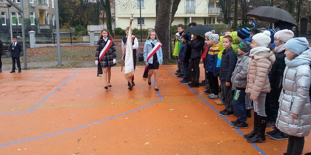 Szkoła Podstawowa nr 1 obchodzi swoje 70-lecie, a wraz z nią harcerstwo działające w tejże. Kultywuje ona tradycje patriotyczne oraz morskie od samego początku jej powstania. Uczniowie i harcerze z III Szczepu Harcerskiego „Słowianie” ZHR im. Zawiszy Czarnego w trakcie Tygodnia Patriotycznego (10.11.2015) spotkali się na boisku szkolnym na uroczystym podniesieniu flagi wraz ze świstem trapowym. Świst trapowy jest to powitanie lub pożegnanie znaczących gości odwiedzających okręt, sygnał ten towarzyszy również podnoszeniu i opuszczaniu bandery. Podczas oddawania świstu trapowego obowiązuje przyjęcie postawy zasadniczej. 12241326_493565090821758_2146624368232158525_nDo pierwszego podniesienia flagi i oddania świstu zostali wyznaczeni harcerze-uczniowie SP 1. Pomimo niesprzyjających warunków atmosferycznych nauczyciele wraz z uczniami brali udział w tej doniosłej chwili.