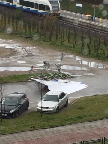 IMG_0007Dodajmy, że to nie jedyna reklama, którą we wtorek powalił wiatr. Na parkingu przy ul. 11 listopada reklama na przyczepie samochodowej runęła na drogę zatrzymując się zaledwie dwa metry od zaparkowanego samochodu.