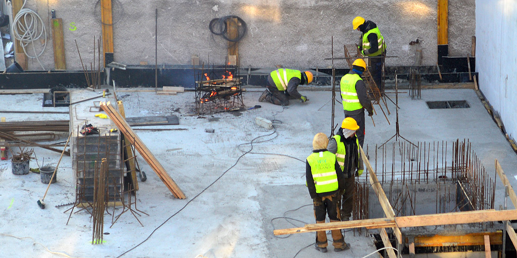 Mróz nie odpuszcza. Budowlańcy ogrzewają się koksownikami
