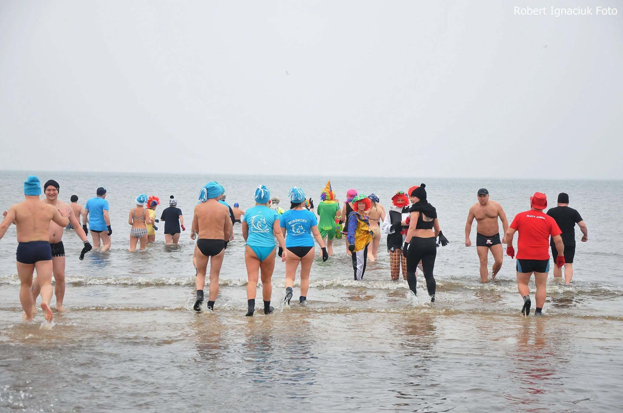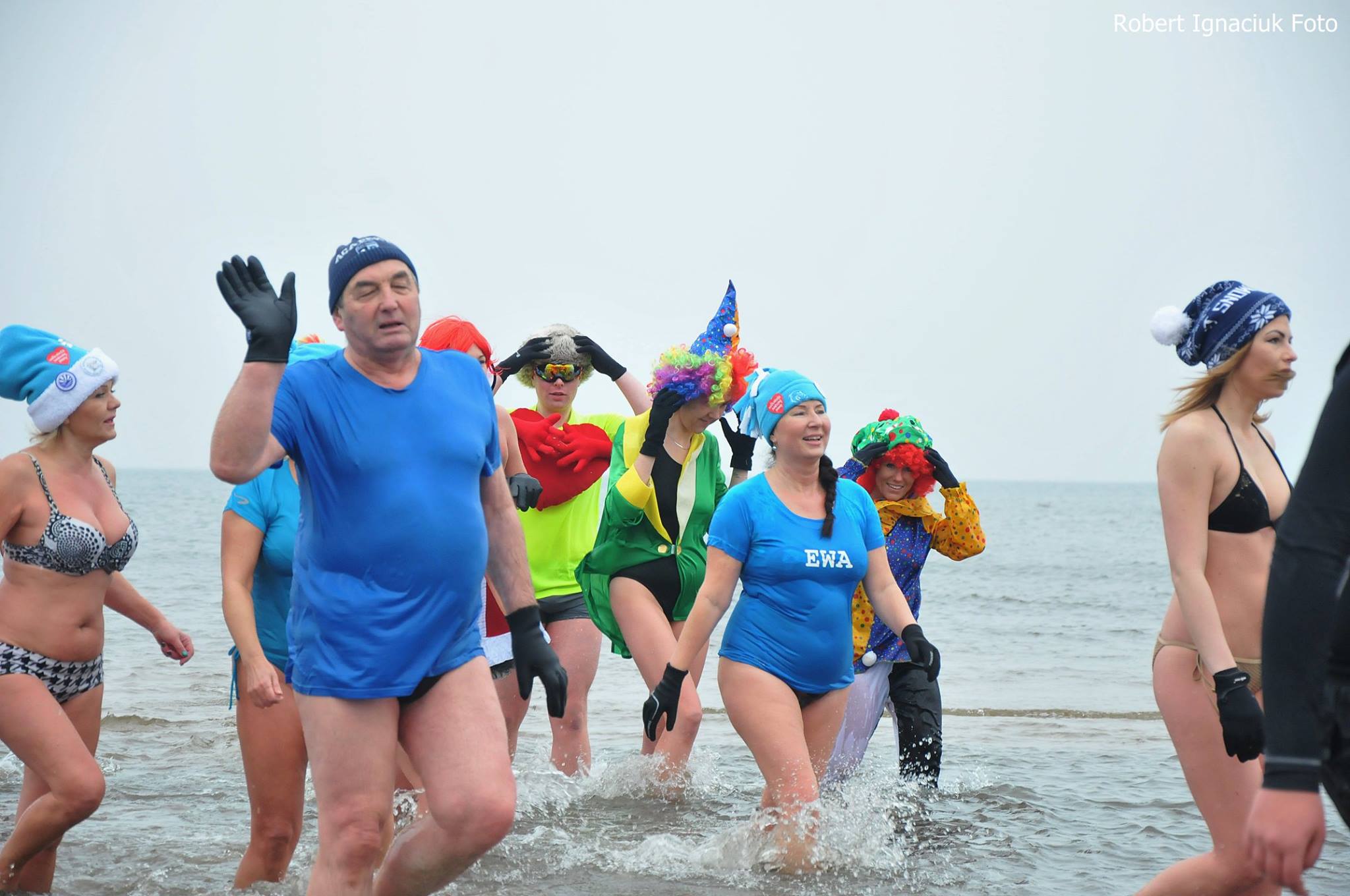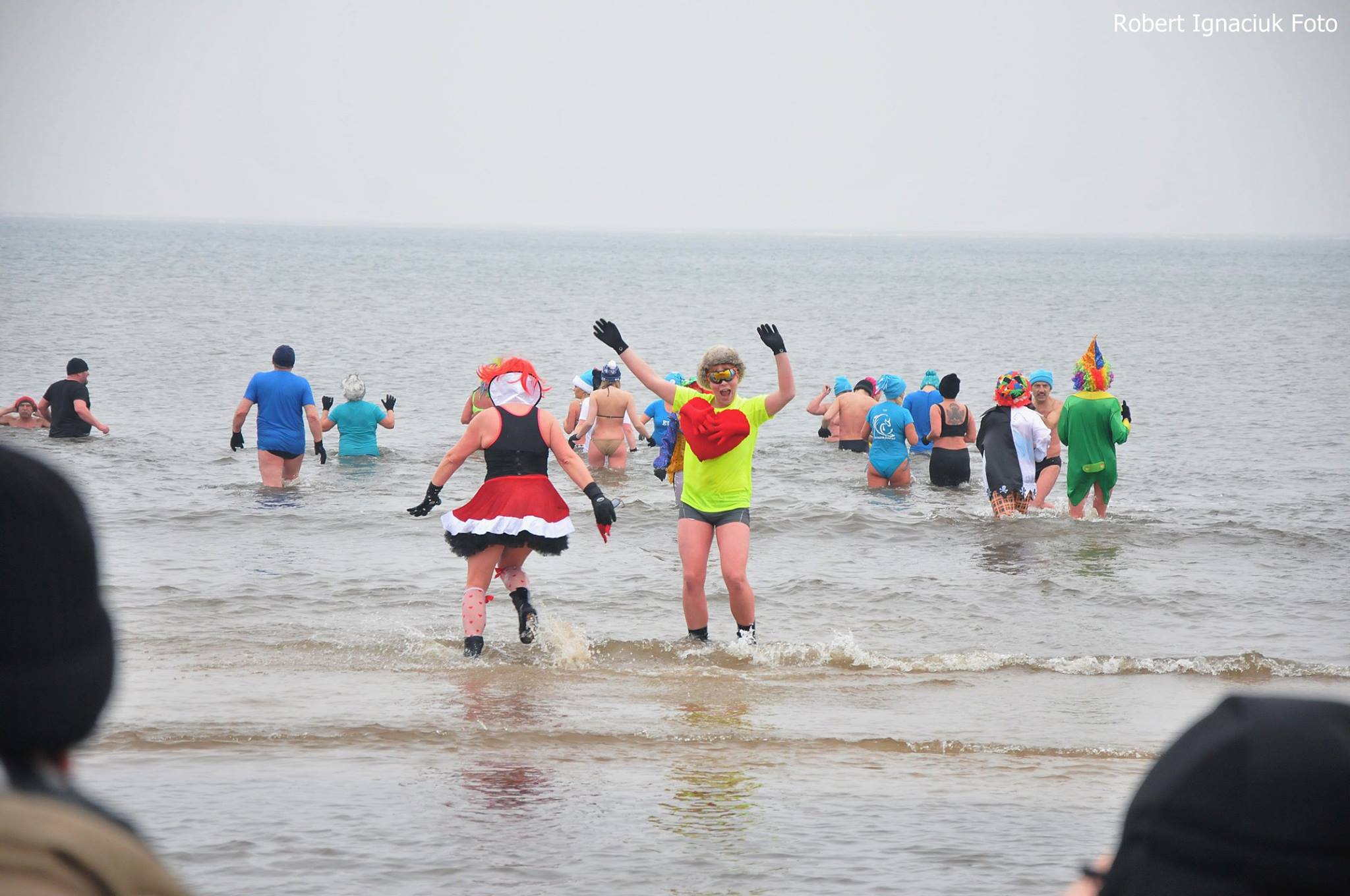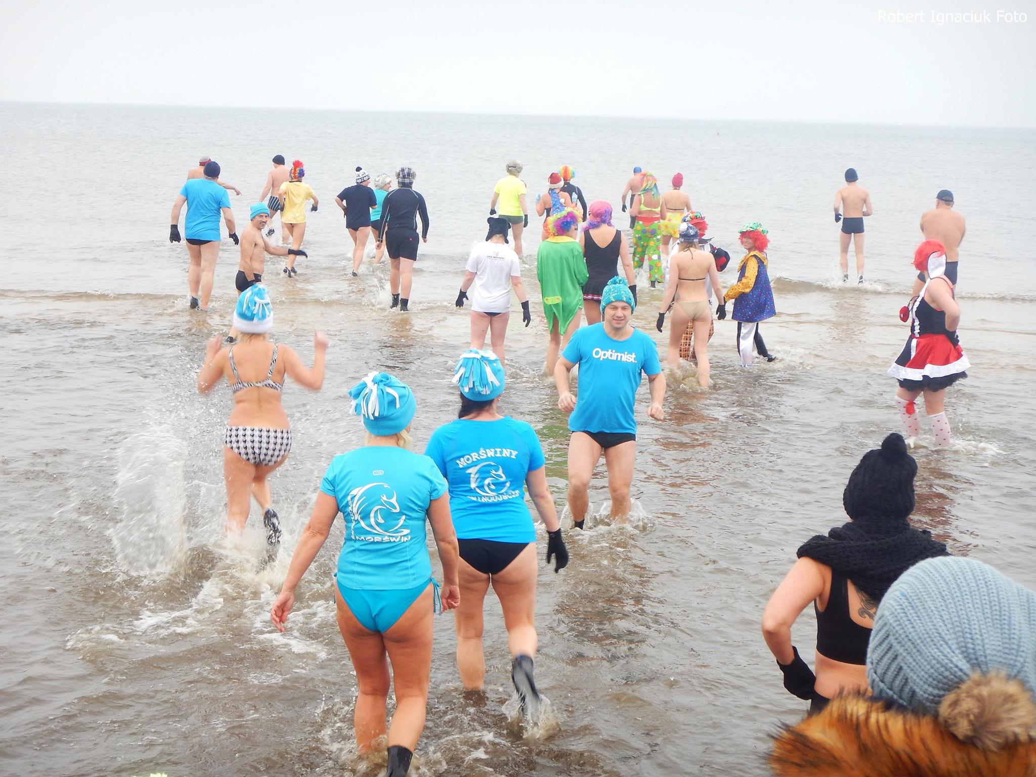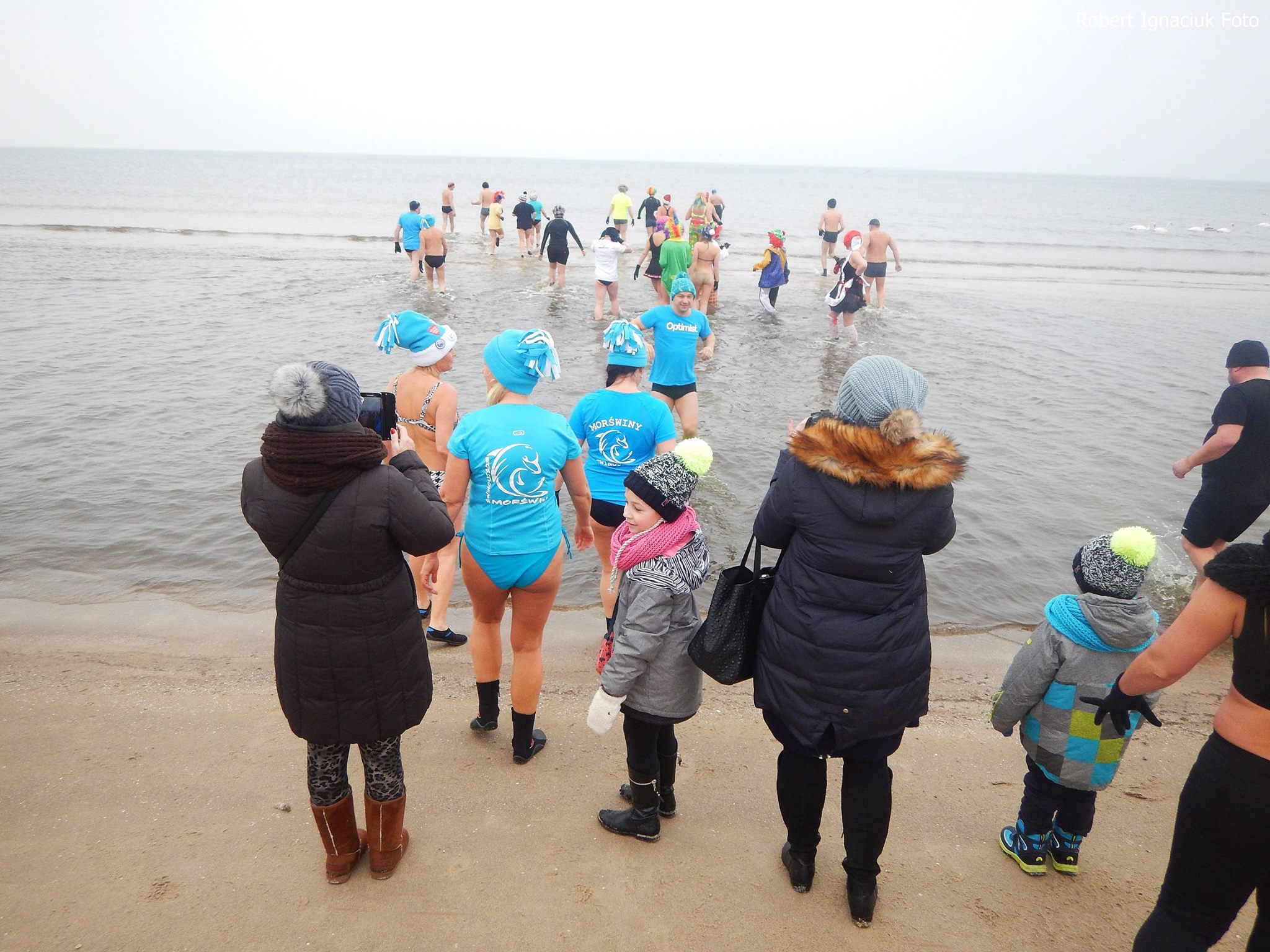 12493425_607164016125858_1735148167396072146_oW kolorowych przebraniach i fantastycznych nastrojach, członkowie klubu morsów „Morświny” wskoczyli do zimnego morza, aby wesprzeć orkiestrowe granie. Towarzyszył im nasz reporter. Na brzegu zebrał się spory tłum gapiów, który obserwował poczynania mrozoodpornych. 12487209_607169846125275_4662849691744673856_oMiędzy nimi przemykali wolontariusze z wośpowymi puszkami. Zbiórka pieniędzy zakończona kąpielą cieszyła się ogromnym zainteresowaniem. W niedzielę temperatura na świnoujskiej plaży była bliska zeru. Dlatego zanim morsy weszły do wody, potrzebowały krótkiej gimnastyki na rozgrzewkę. Po wyjściu zapewniali, że jest im bardzo gorąco i chętnie wskoczyliby jeszcze raz. Tak trzymać!
