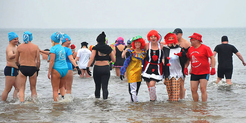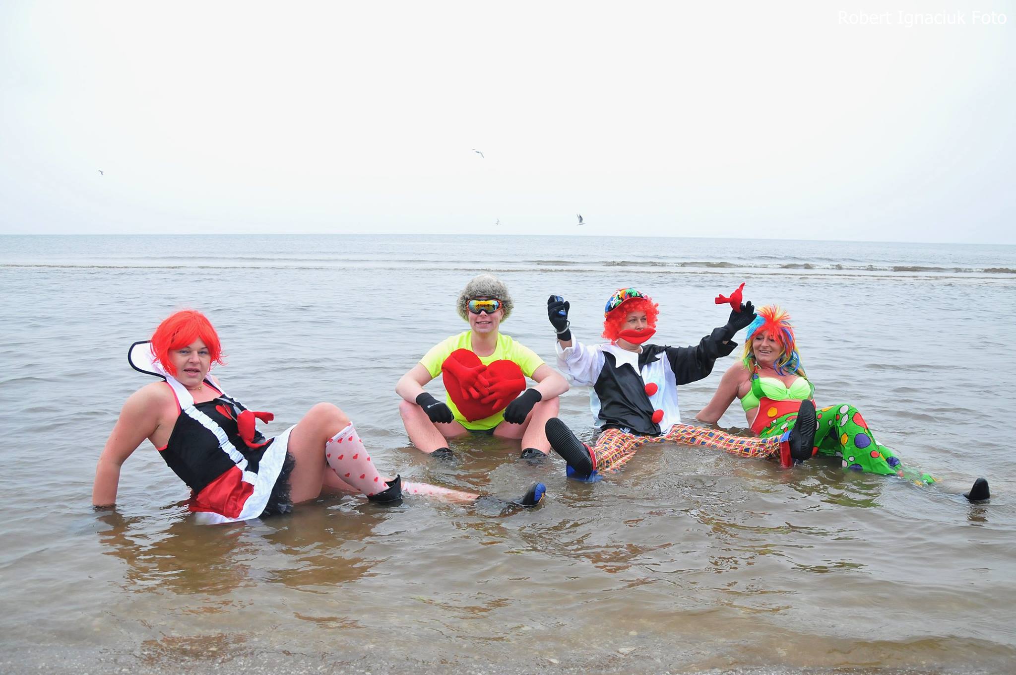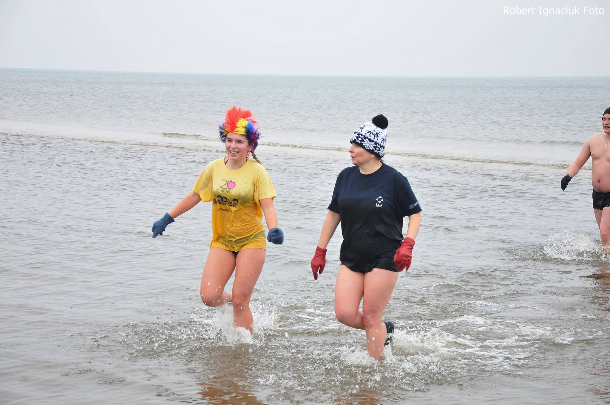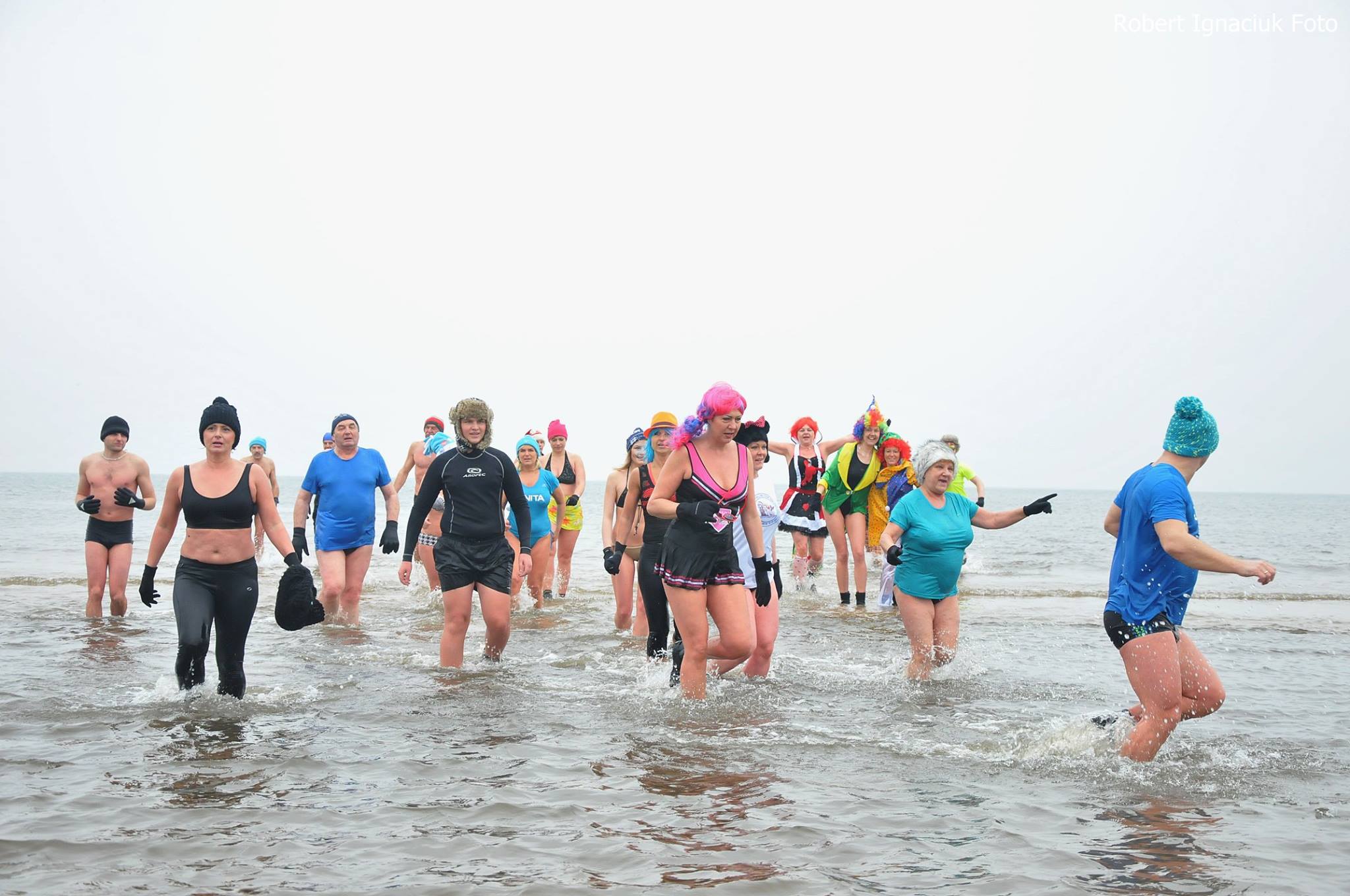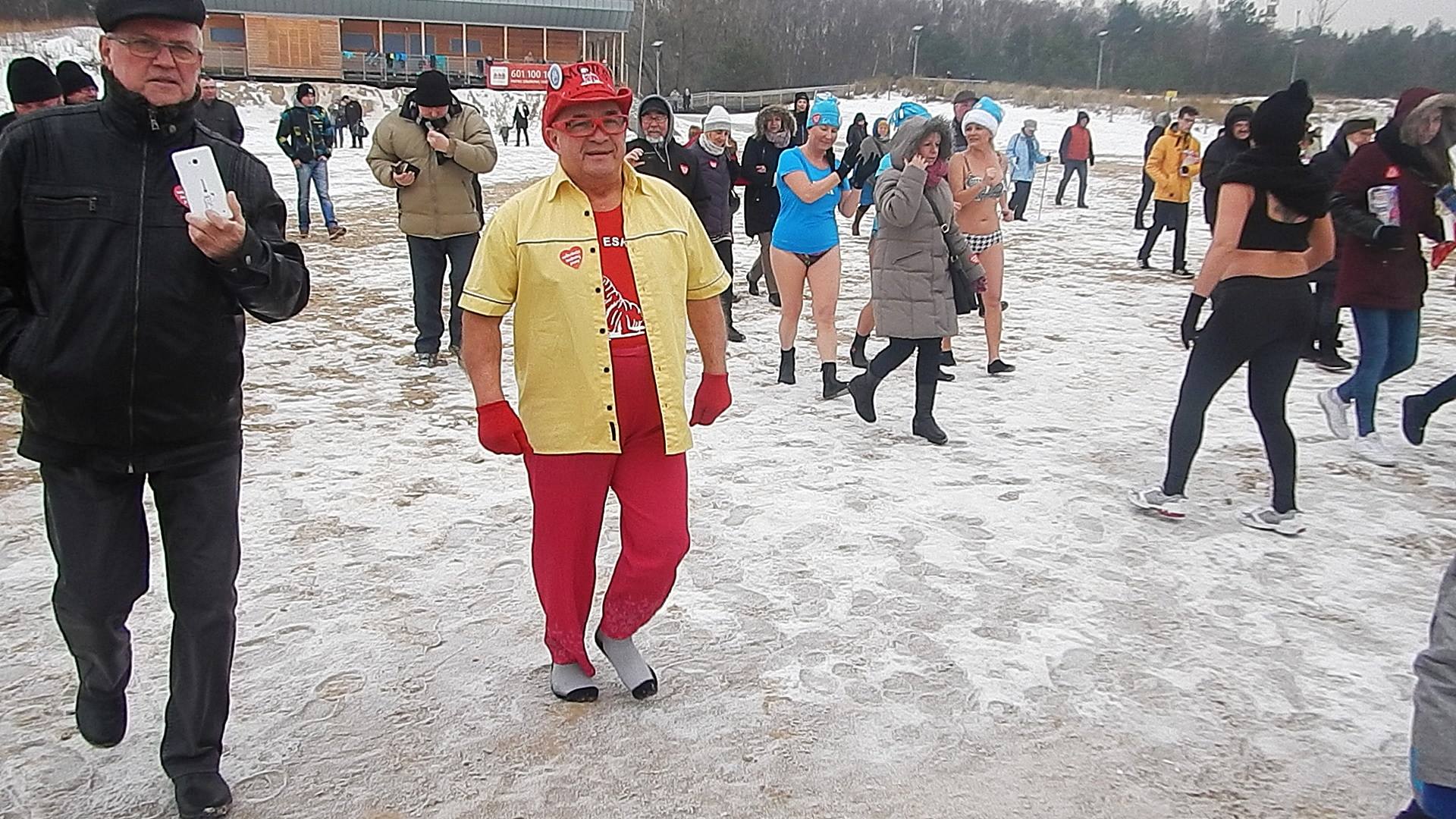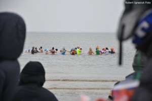 12493425_607164016125858_1735148167396072146_oW kolorowych przebraniach i fantastycznych nastrojach, członkowie klubu morsów „Morświny” wskoczyli do zimnego morza, aby wesprzeć orkiestrowe granie. Towarzyszył im nasz reporter. Na brzegu zebrał się spory tłum gapiów, który obserwował poczynania mrozoodpornych. 12487209_607169846125275_4662849691744673856_oMiędzy nimi przemykali wolontariusze z wośpowymi puszkami. Zbiórka pieniędzy zakończona kąpielą cieszyła się ogromnym zainteresowaniem. W niedzielę temperatura na świnoujskiej plaży była bliska zeru. Dlatego zanim morsy weszły do wody, potrzebowały krótkiej gimnastyki na rozgrzewkę. Po wyjściu zapewniali, że jest im bardzo gorąco i chętnie wskoczyliby jeszcze raz. Tak trzymać!