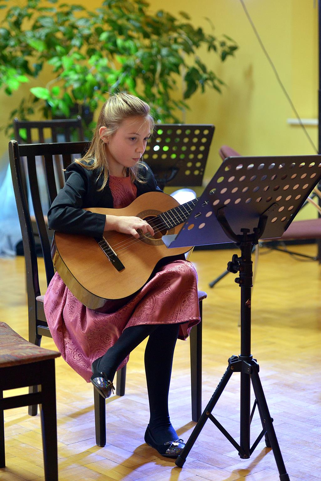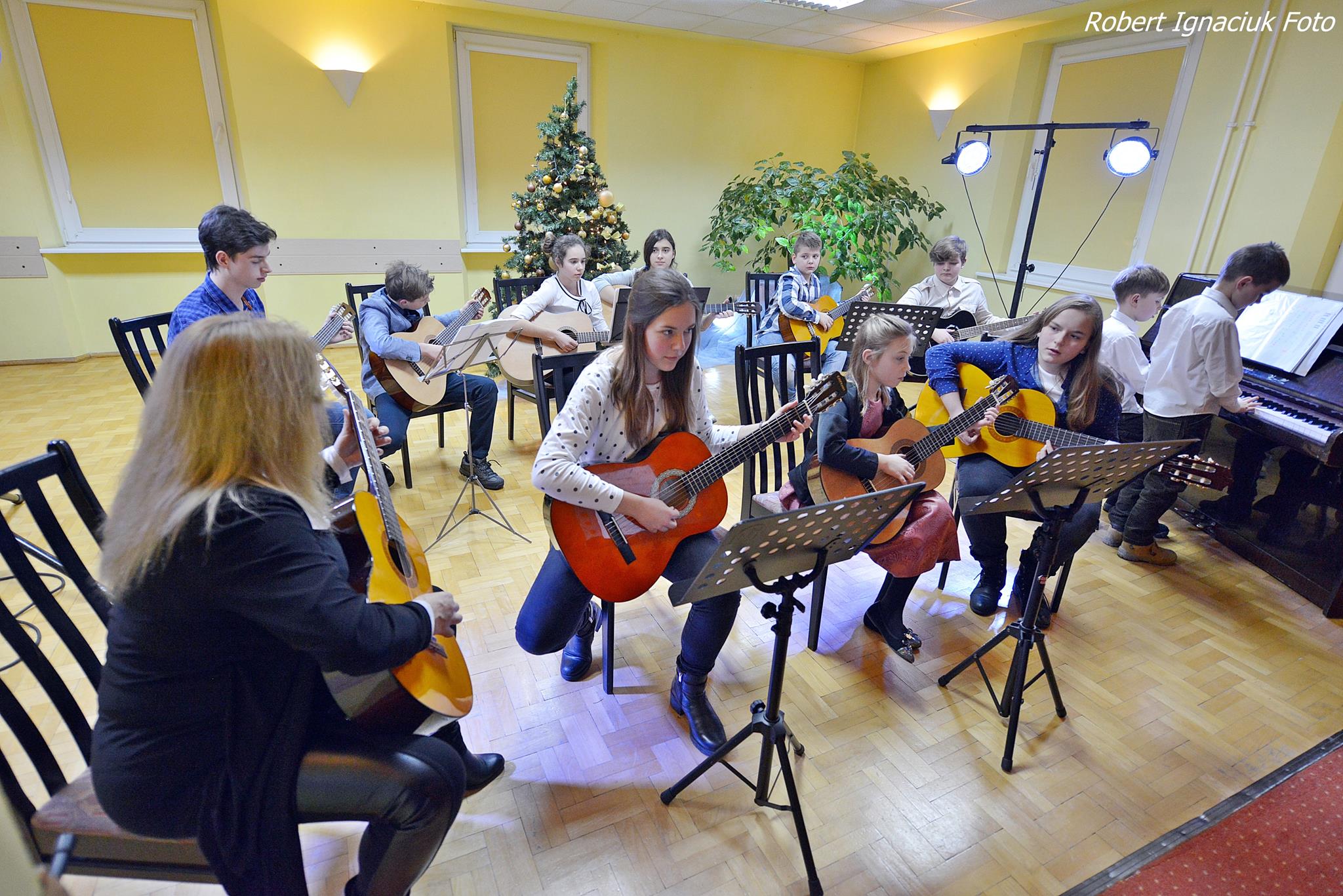 Kolędowanie rozpoczęli najmłodsi uczniowie studium. Zagrali na pianinie i gitarze. Na zakończenie wszyscy odegrali zimową piosenkę „Dzwonki sań”. Koncert cieszył się sporą popularnością, co potwierdzili licznie przybyli bliscy młodych muzyków. Kolędy w wykonaniu najmłodszych świnoujścian co chwila nagradzane były gromkimi oklaskami.