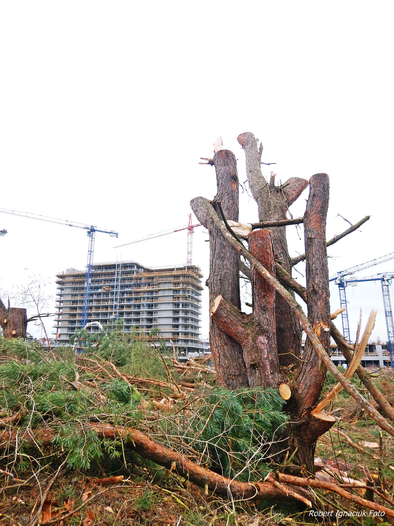 „Spacerowicze, którzy przechodzili koło wyciętych drzew nie mogli się nadziwić prędkości z jaką drwale wycinają drzewa.”