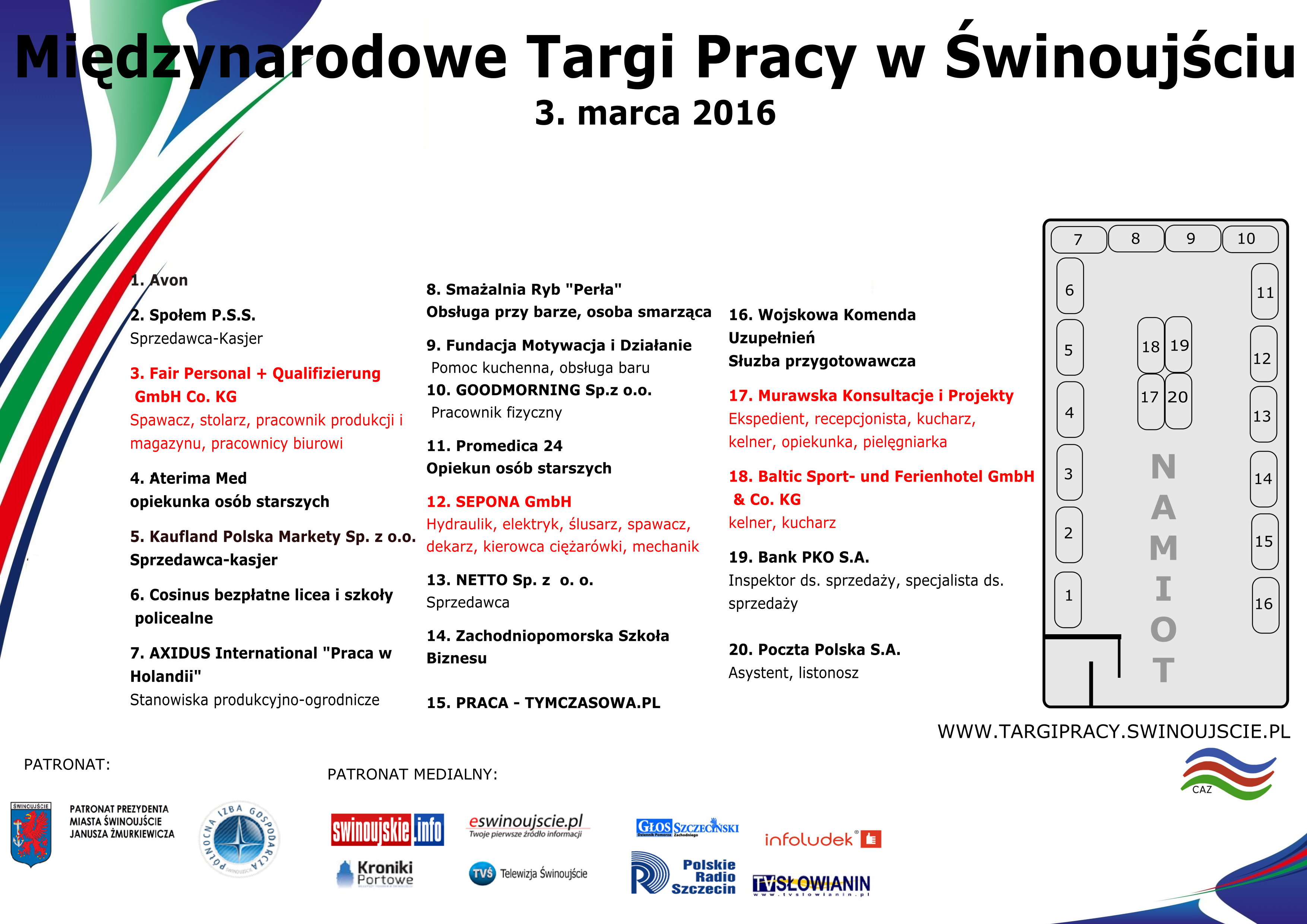 3NASZ PATRONAT. W czwartek, w samo południe rozpoczną się Targi Praca. Sala MDK wypełni się pracodawcami poszukującymi załogi do swoich firm. Centrum Aktywizacji Zawodowej będzie gościć ponad 70 wystawców z Polski i Niemiec, w tym agencje zatrudnienia oraz firmy z branży gastronomicznej. Na zewnątrz staną dwa specjalne namioty. W tym roku pracodawcy proponują pracę głównie w branżach gastronomicznej, hotelarskiej, handlowej, budowlanej, stoczniowej.