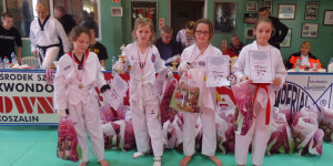 5 marca w Koszalinie odbyła się Wojewódzka Olimpiada Dzieci i Młodzieży w Taekwodno Olimpijskim. Turniej jednocześnie był upamiętnieniem wieloletniego działacza i trenera taekwondo – Henryka Ficka i był jego III Memoriałem. Zawody przeznaczone były dla dzieci do 11 roku życia. U.L.K.S.W. Pomorze Świnoujście reprezentowało 35 osób. art-olimpiada3Dzieci walczyły w walkach „kalaki”. Natomiast młodzicy rywalizowali w mini kyorugi (walka bez kontaktu na głowę). Młodzi adepci spisali się znakomicie przywożąc 28 medali. Dla wielu maluchów były to pierwsze starty w zawodach. Na specjalne wyróżnienie zasługują: Leo Bartoszek, Hubert Guzik, Rafał Lipski i Jan Walkowiak. art-olimp4Każdy z nich wygrał 3 pojedynki i zdobył złoty medal. Wśród tych nieco starszych wielkie gratulacje należą się Wiktorii Partyce, które zwyciężyła dwie walki i również stanęła na najwyższym podium. Pierwszą z walk „Wiwi” wygrała z dużo bardziej doświadczoną zawodniczką, posiadającą czerwony pas.