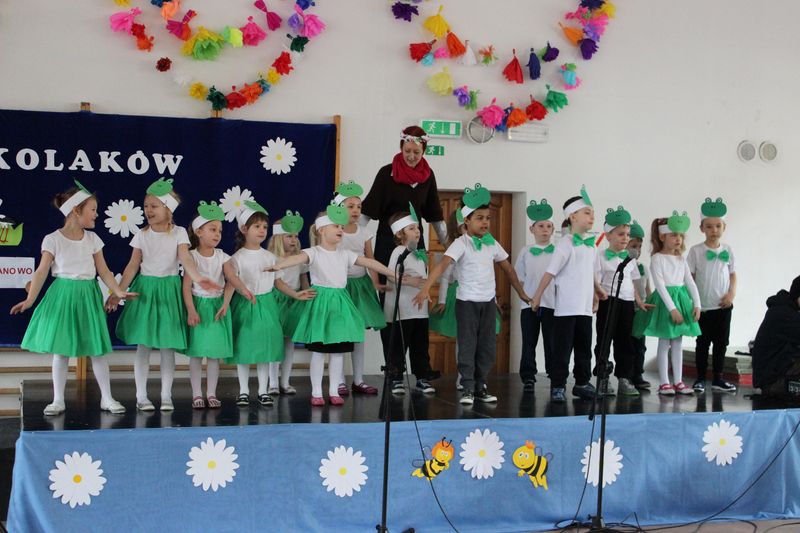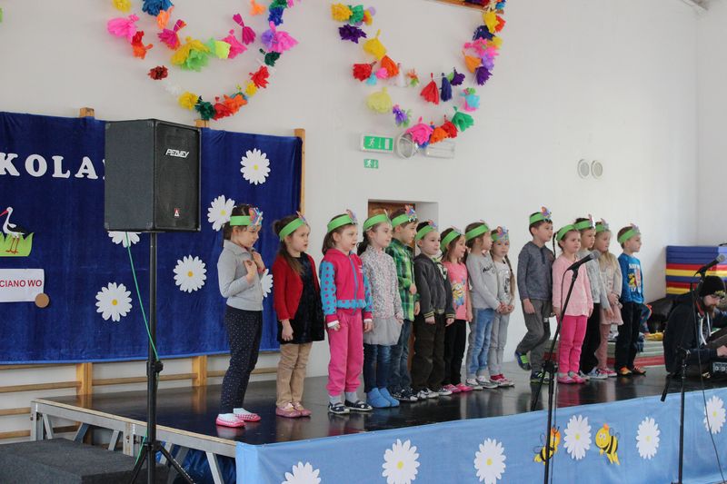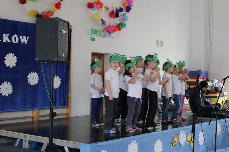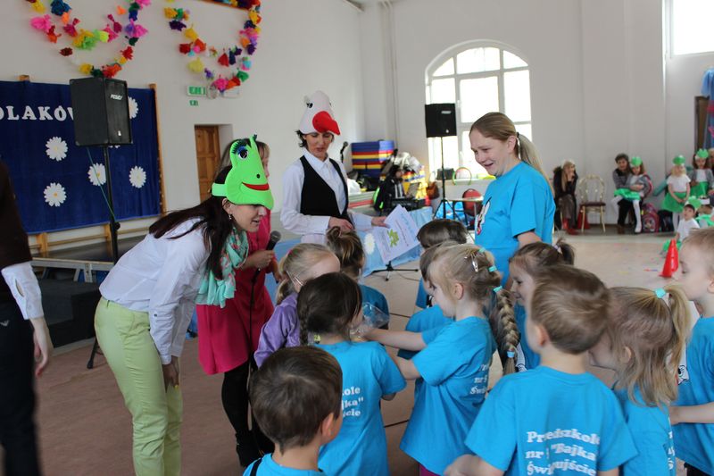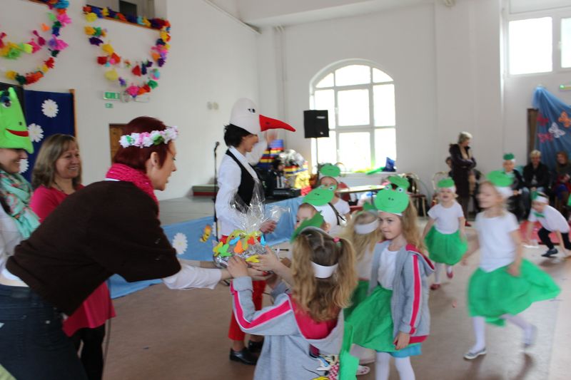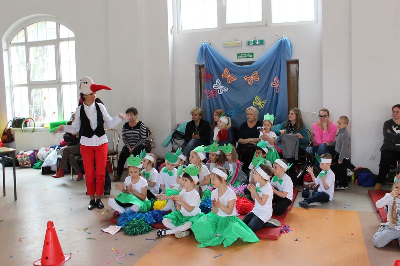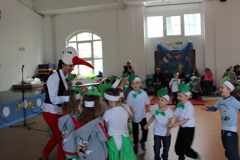 03Do rytmicznej, wspólnej zabawy zapraszały dzieci żabka Marcysia, bocian Klekuś oraz wiosenne wróżki. Emocji było co niemiara , a rozpromienione buzie zaproszonych gości świadczyły o udanej zabawie. Wszystkie drużyny wykazały się szeroką wiedzą o wiośnie i dużymi umiejętnościami sportowymi. Specjalne Jury wręczyło pamiątkowe dyplomy i słodycze. Do zobaczenia za rok! Organizatorzy ZSP nr 4