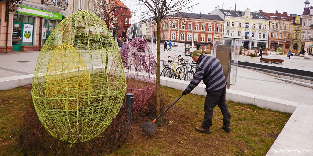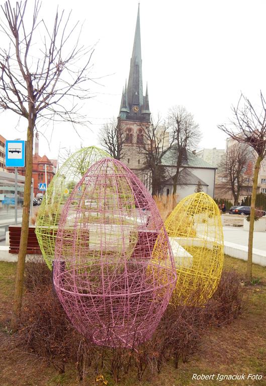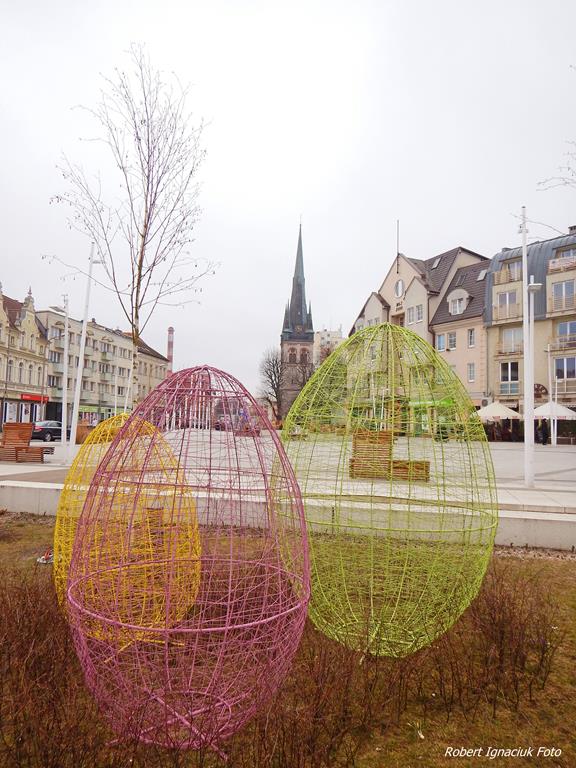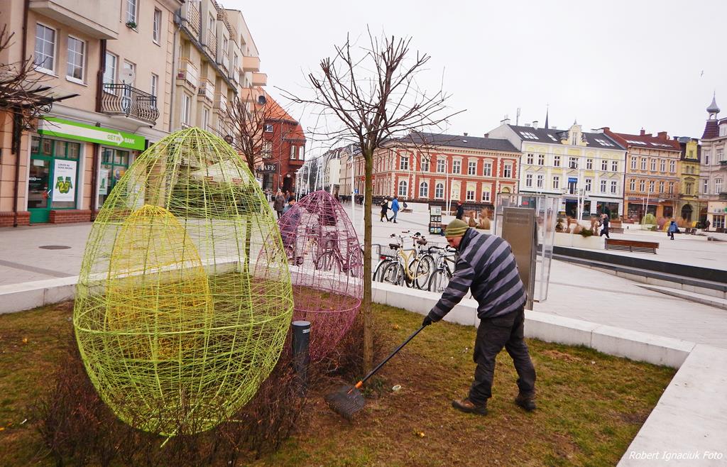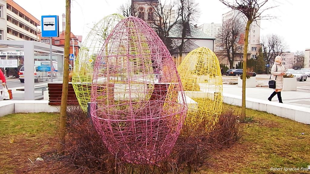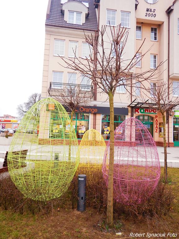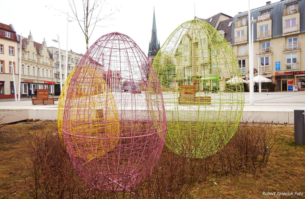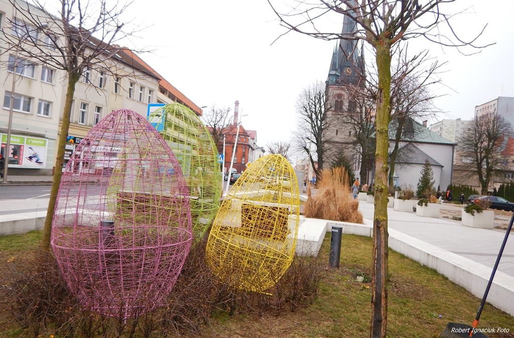 W centrum miasta ustawiono ozdoby wielkanocne. Wielkie kolorowe jaja stanęły na placu Wolności. Te same widzieliśmy rok temu. Rodzice chętnie robią pamiątkowe zdjęcia swoim pociechom. W ubiegłym roku dodatkowo ustawiono palmy wielkanocne. Czy będą w tym roku? Tego nie wiadomo. Mieszkańcy z entuzjazmem podchodzą do dekorowania miasta.