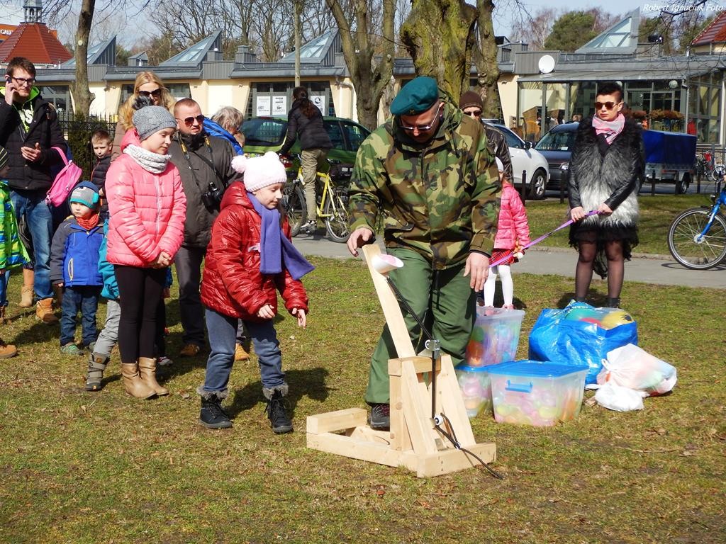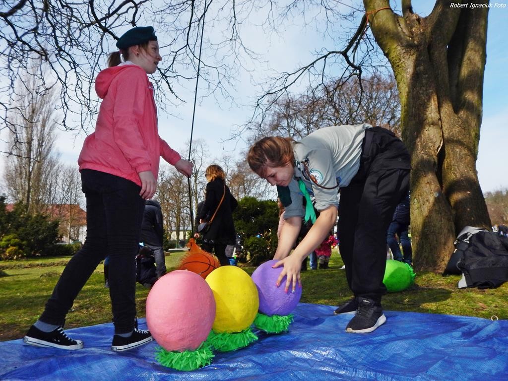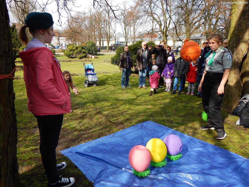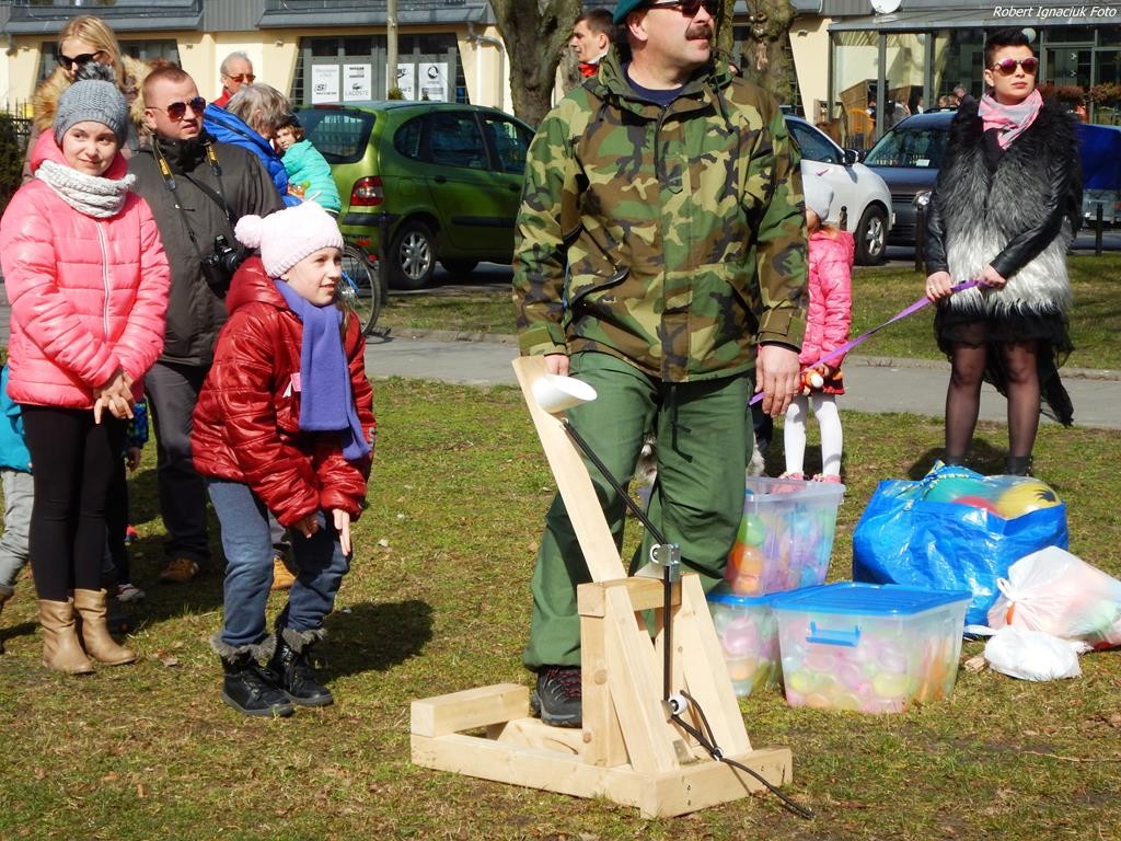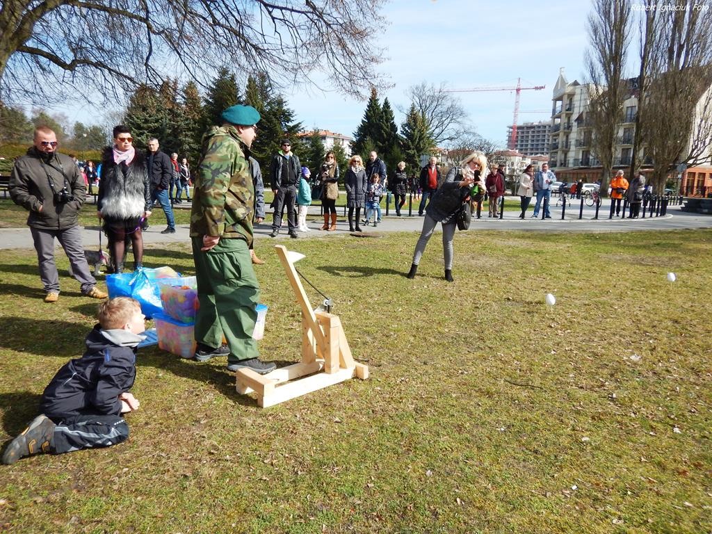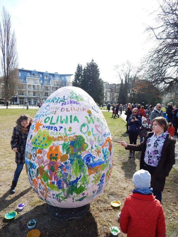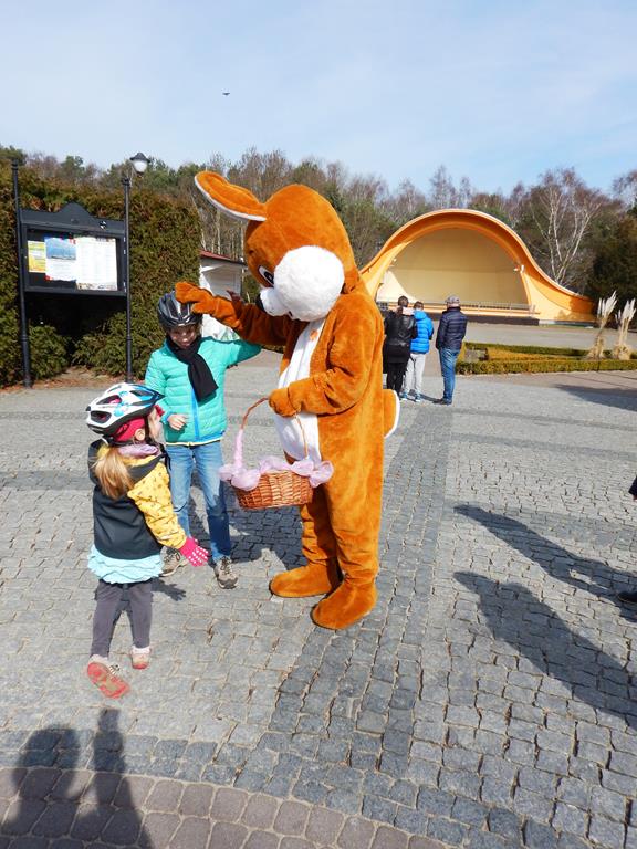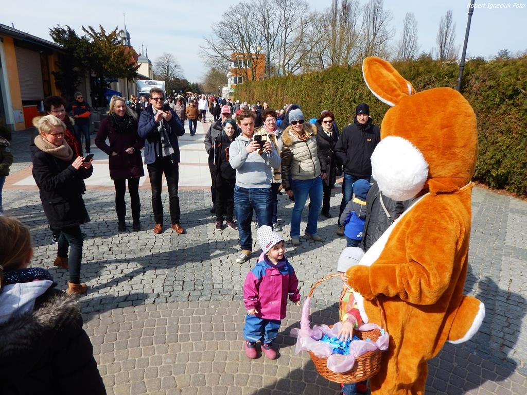 Kilkaset zdjęć z gigantycznym pluszowym zającem zrobili sobie w niedzielę mieszkańcy i turyści. Nieopodal muszli koncertowej przygotowano po raz kolejny imprezę pt. Wyspy Wielkanocne. Na najmłodszych czekało malowanie wielkiego jajka, animacje przygotowane przez harcerzy oraz Mirka Nieśpelskiego. Było bardzo kolorowo i zabawnie. Dzieci strzelały z łuku, z katapulty, wspinały się po przeszkodach, jeździły na odwrotnie skrętnym rowerze. Dzięki pogodzie, na plac przed muszlę koncertową przyszły setki ludzi.