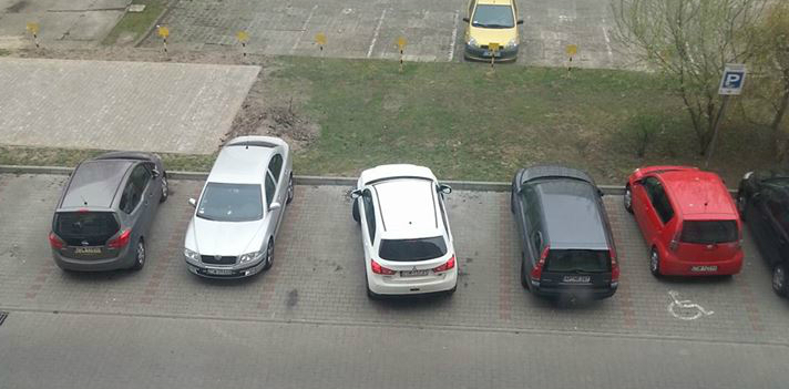 Kierowca srebrnej Skody parkujący po lewej stronie, parkuje perfidnie chamsko. Przy takim ustawianiu jego auta nie ma możliwości zaparkowania tak aby weszły 2 auta. Fotografka ma ubaw ale tylko dzięki złośliwemu sąsiadowi – albo sama prowokuje takie sytuacje, być może się nudzi