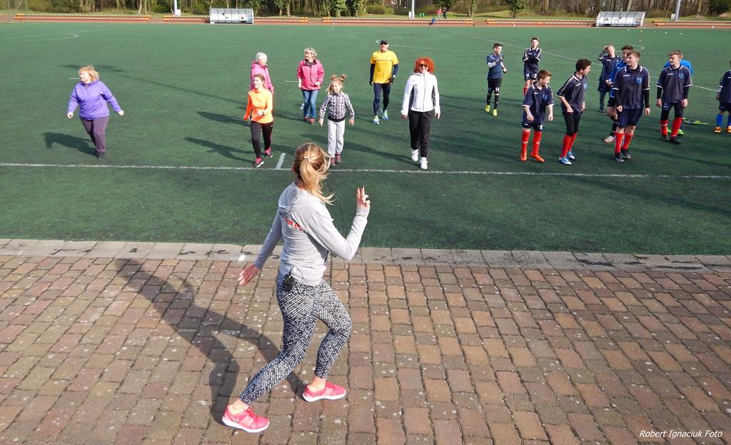 [ZDJĘCIA I FILM] Pierwszy marsz Nordic Walking. Rozgrzewka z trampkarzami Floty