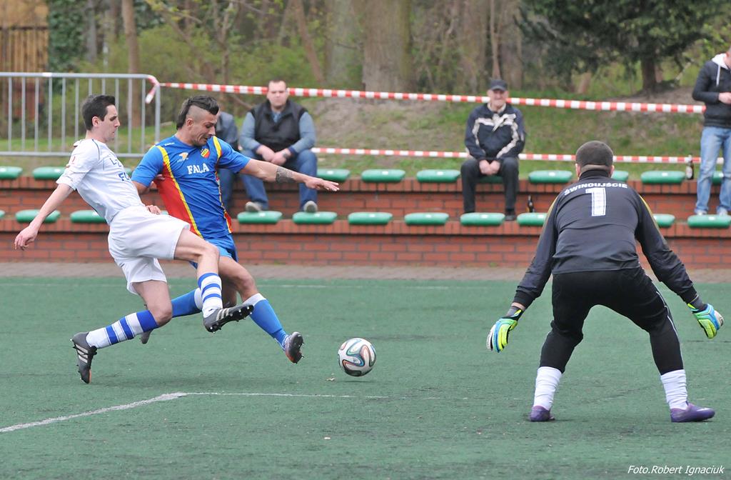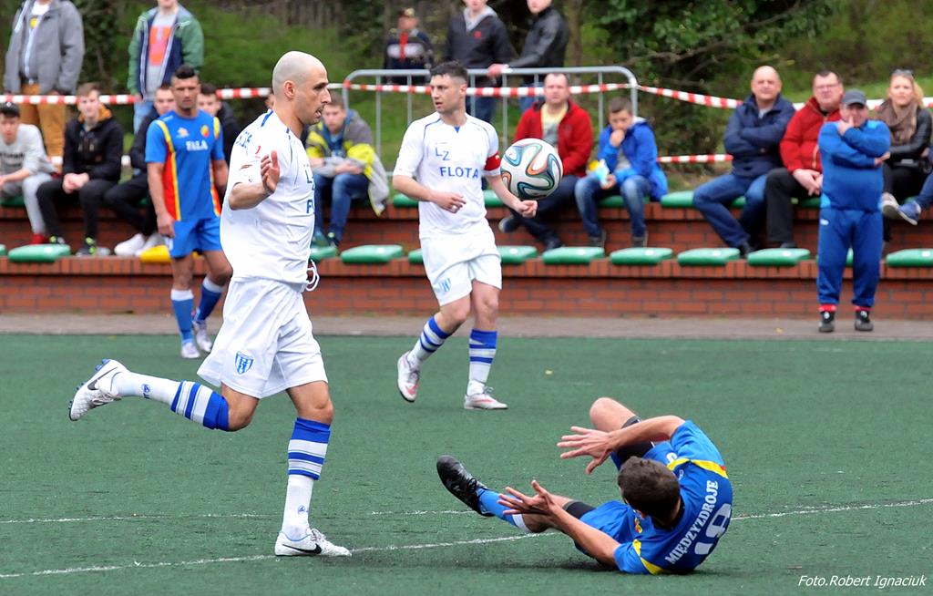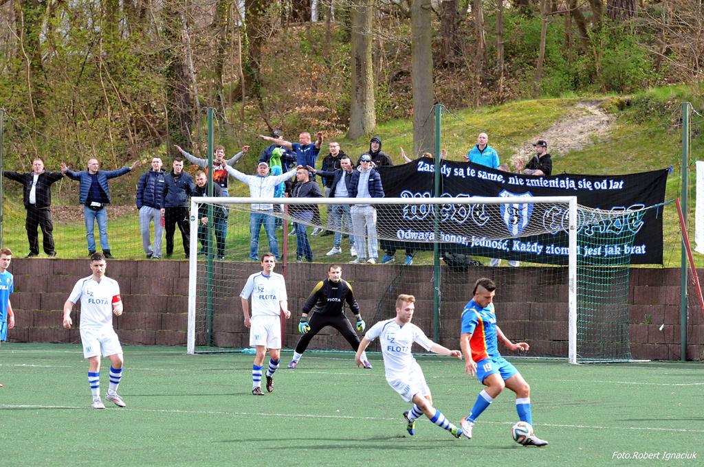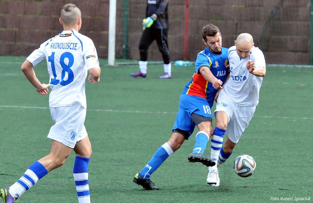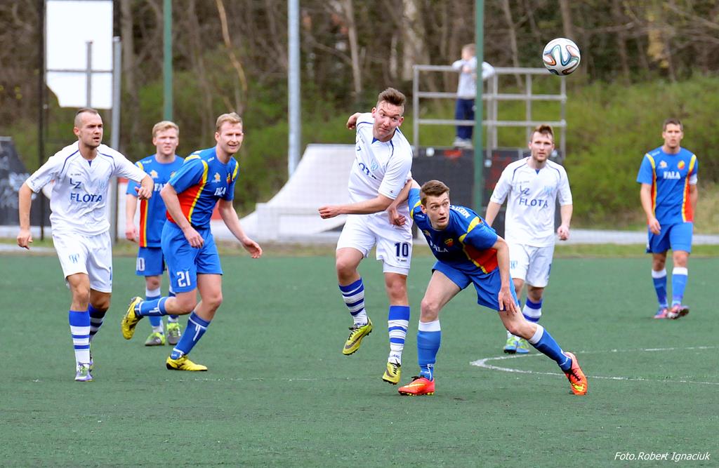Piłkarze Floty rozegrali w sobotę mecz z Falą Międzyzdroje. Spotkanie ze względu na remont płyty głównej odbyło się na boisku ze sztuczną nawierzchnią. Mecz zakończył się zwycięstwem Floty 3:2.