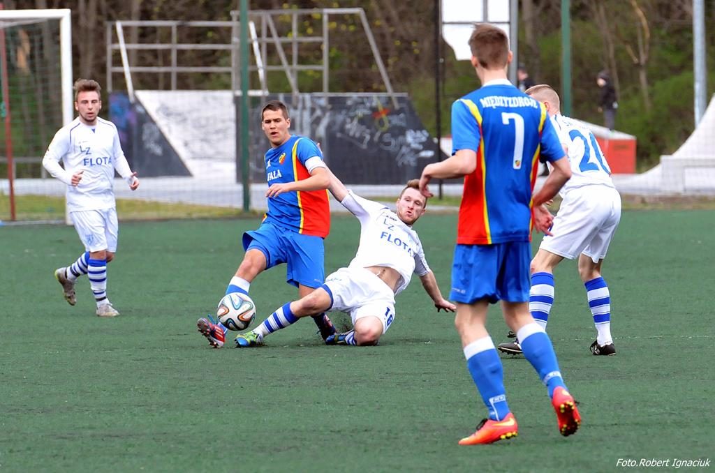 Piłkarze Floty rozegrali w sobotę mecz z Falą Międzyzdroje. Spotkanie ze względu na remont płyty głównej odbyło się na boisku ze sztuczną nawierzchnią. Mecz zakończył się zwycięstwem Floty 3:2.