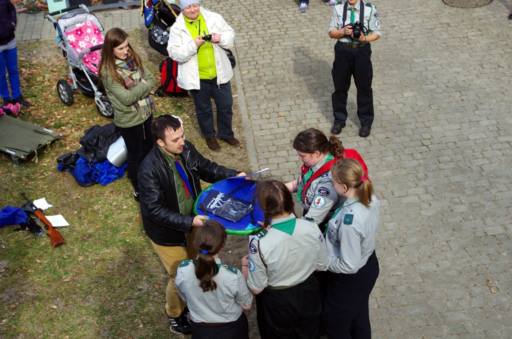 Uczestnicy na Harcerskim Biegu Terenowym musieli pokonać odcinek 150 m. Do zadań należało: rozstawienie i złożenie małego namiotu, rozpakowanie i spakowanie dużego plecaka turystycznego, pokonanie zasieków, udzielenie pierwszej pomocy poszkodowanej rowerzystce i przetransportowanie jej na noszach, strzelenie z wiatrówki oraz nadanie zaszyfrowanej wiadomości alfabetem Morse’a przy pomocy chorągiewek.