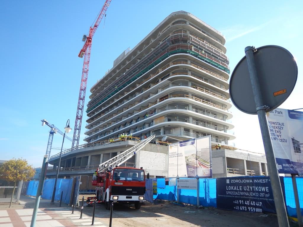 Na szczęście to były tylko zaplanowane ćwiczenia. Strażacy dzięki uprzejmości firmy Zdrojowa Invest wykorzystali najwyższy budynek w Świnoujściu do ćwiczeń.