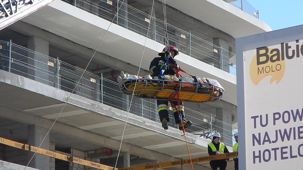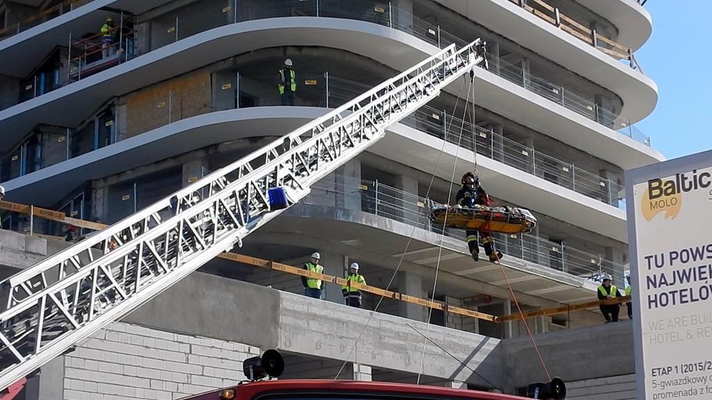 Największa dostępna w Świnoujściu drabina uczestniczyła w akcji ewakuacji poszkodowanego budowlańca. Do zdarzenia doszło podczas prac budowlanych przy ulicy Uzdrowiskowej. Na szczęście były to tylko ćwiczenia, a strażacy sprawdzali jedynie swoją wiedzę i doskonalili umiejętności.
