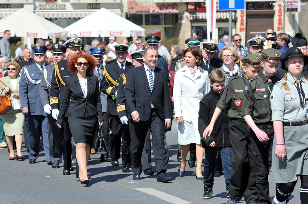 3 maja 2016 r. tuż przed południem na placu Wolności odbył się koncert pieśni patriotycznych z okazji Święta Narodowego Trzeciego Maja, w wykonaniu Orkiestry Wojskowej Świnoujście. Wcześniej władze samorządowe i mieszkańcy miasta uczestniczyli we mszy św. odprawionej w intencji Ojczyzny. O godz. 11 uroczystości przeniosły się na pl. Słowiański pod Pomnik Bohaterom Walk o Niepodległość Rzeczypospolitej. Delegacje złożyły kwiaty pod pomnikiem.