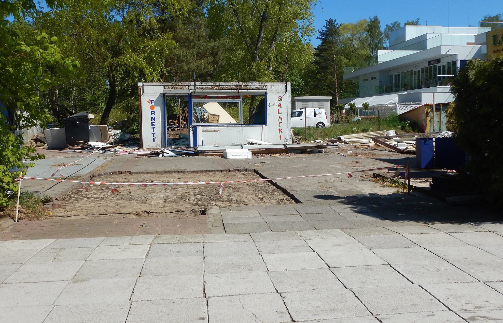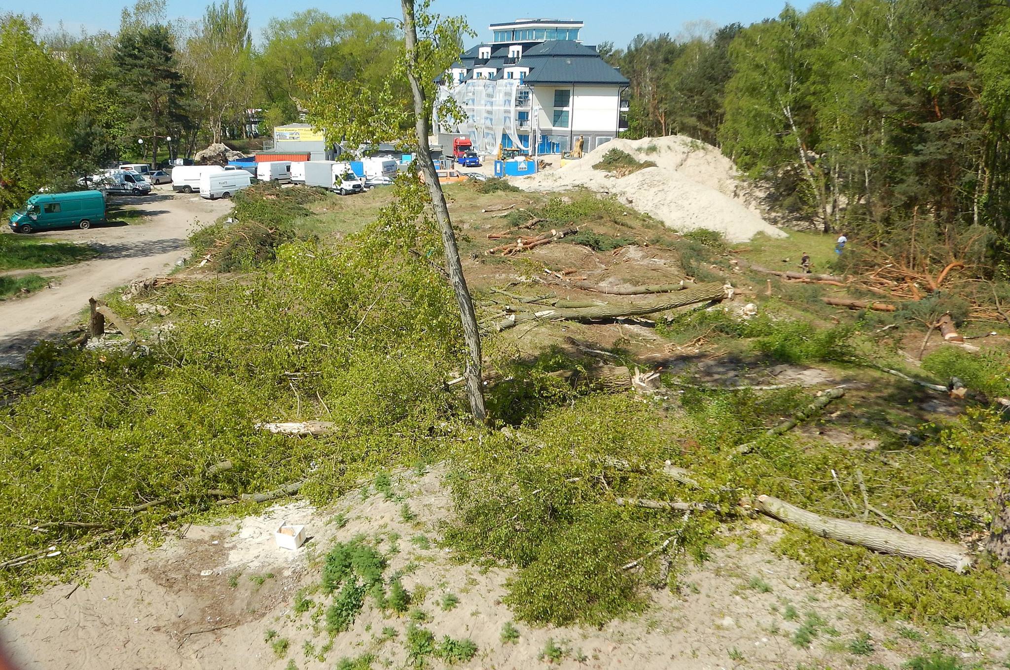 Trwa kolejna wycinka drzew w dzielnicy nadmorskiej. Na działkach staną kolejne hotele. Teren  został podzielony na dwie działki. Tę bliżej chodnika, w miejscu gdzie była lodziarnia,o wielkości 3. 559 metrów kwadratowych kupiła świnoujska firma Platinum Resort sp. z o.o. za kwotę 5 mln 660 tys. złotych netto. Drugą o powierzchni 3.647 metrów kwadratowych, kupiły osoby prywatne Państwo  Bobryk ze Szczecin, za kwotę 5 mln 350 tys. złotych netto. Działki mają przeznaczenie pod zabudowę pensjonatowo-hotelowo-usługową.