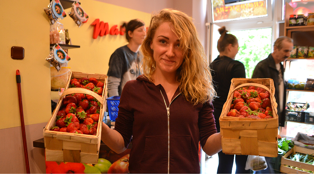 Kupujący czekali na truskawki. Sprawdziliśmy w sklepie warzywno-owocowym „Marciny” przy ul. Konstytucji 3 Maja. Niektórzy kupują na spróbowanie po kilkanaście sztuk, inni biorą całe kobiałki.