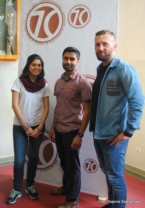a_MG_0021Ale po kolei. Absolwentka „Mieszka” – Olga Specjalska, obecnie pracująca w Japonii, osoba w świecie bywała znacznie ponad przeciętną miarę, postanowiła z okazji swoich urodzin zaprosić do Polski przyjaciół z różnych stron świata i pokazać im nie tylko nasze miasto i jego okolice, ale również zabrać ich później w podróż po naszym pięknym kraju. Jako że Olga jest na szczęście osobą otwartą i ogólnie życzliwą dla bliźnich nie zatrzymała swoich arcyciekawych znajomych dla siebie, ale podzieliła się nimi z „mieszkową” społecznością. Tak oto, miało miejsce w naszej szkole wydarzenie bez precedensu w całej bogatej przecież historii naszych międzynarodowych kontaktów. Wybaczcie, że piszemy o tym dopiero teraz, ale pożegnanie uczniów klas III, a potem majówka i początek matur sprawiły, że sprawozdanie z takich przyjemności trzeba było odłożyć.