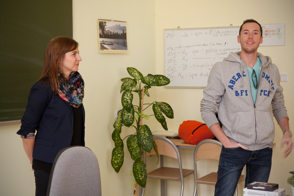 DSC07137Oto główna bohaterka tego pozytywnego zamieszania – Olga:  jak już wspomnieliśmy na początku, obecnie mieszka i pracuje w Japonii, ale w ciągu kilku zaledwie lat od ukończenia studiów w Warszawie pracowała i mieszkała w Australii, Singapurze, przebiegła maraton w Brazylii (w celu charytatywnym), nauczyła się żeglować, budowała domy na Filipinach (charytatywnie) i przejechała Mongolię na motorze. Rozpoczęła od wyjazdów w trakcie studiów w ramach programu Erasumusa; 1 rok w Portugalii i roczna praktyka w Korei Południowej. Nic dziwnego, że robiąc tak ciekawe rzeczy poznawała tak ciekawych ludzi, a my jesteśmy wdzięczni, że nam ich przedstawiła. Inny przykład: Brayden z Australii: potrafi pilotować samoloty i pracował przez jakiś czas jako pilot w australijskich siłach powietrznych, ale teraz pracuje w firmie IT i studiuje prawo, a w przyszłości chce pracować dla organizacji pozarządowych i nieść pomoc dzieciom w krajach Ameryki Łacińskiej. Nataliah – obecnie pracuje dla wielkich firm jako specjalista od human resources, ale w przyszłości chce zostać dziennikarką i analitykiem politycznym. Delia uczy języka hiszpańskiego i portugalskiego przy pomocy skype’a, dzięki czemu może mieszkać w dowolnym miejscu na świecie i uczyć osoby przebywające aktualnie w zupełnie innej strefie czasowej. To od Natalii, Braydena, Maxa, Eduarda, Magdy i innych tyle razy słyszeliśmy pełne pasji wezwanie „Możesz wszystko! Nie bój się! Świat należy do CIEBIE! Olga wtórowała im z niemniejszym entuzjazmem: „Nie mów, że nie dasz rady, że nie masz pieniędzy, trzeba tylko mieć odwagę, trzeba tylko chcieć!” Olga oczywiście wie, co mówi, gdyż po zakończeniu studiów w Warszawie po prostu uparcie wysyłała swoje CV do różnych zagranicznych firm i w końcu osiągnęła cel, ma wymarzoną pracę, ma życie, jakie zawsze chciała mieć. Hm…. – czy już wspomnieliśmy, że warunkiem koniecznym jest znajomość języków obcych? 😉