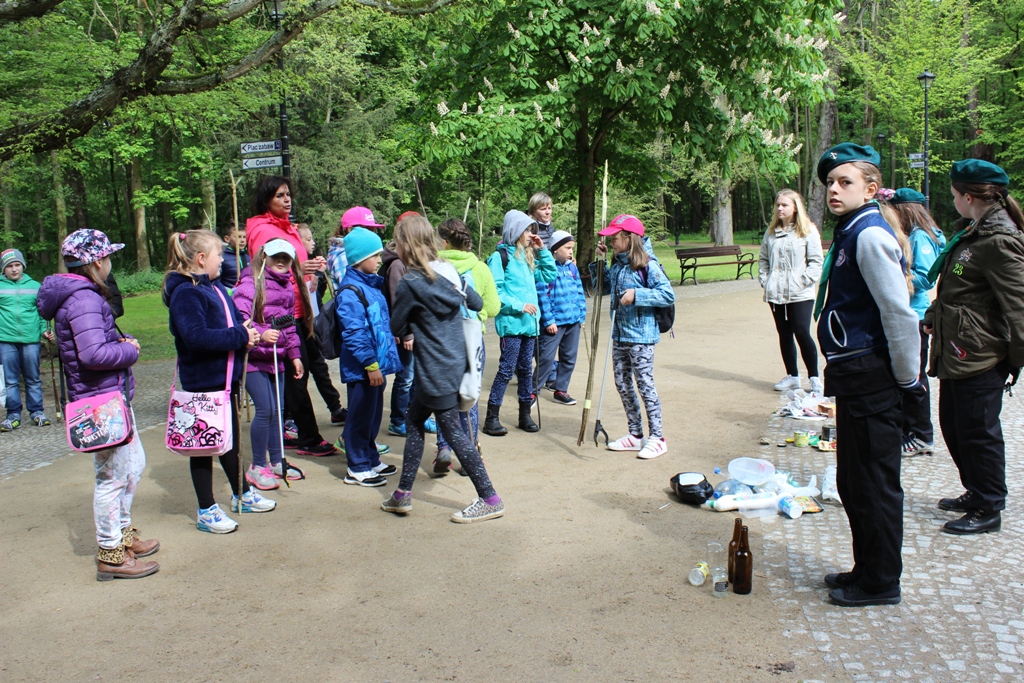 Rajd wystartował przy bramie do zrewitalizowanej części Parku Zdrojowego, obok ronda Róży Wiatrów. Dzieciaki ze szkoły nr 6 i ich nauczyciele, po otrzymaniu mapek określali miejsce znajdowania się, zapoznawali się z parkowym regulaminem, śpiewali jedną zwrotkę piosenki – najbardziej popularna była piosenka o mamie, po czym ruszali dalej według mapki.