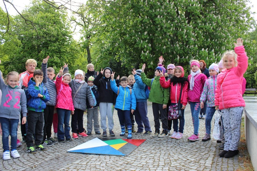 Rajd wystartował przy bramie do zrewitalizowanej części Parku Zdrojowego, obok ronda Róży Wiatrów. Dzieciaki ze szkoły nr 6 i ich nauczyciele, po otrzymaniu mapek określali miejsce znajdowania się, zapoznawali się z parkowym regulaminem, śpiewali jedną zwrotkę piosenki – najbardziej popularna była piosenka o mamie, po czym ruszali dalej według mapki.