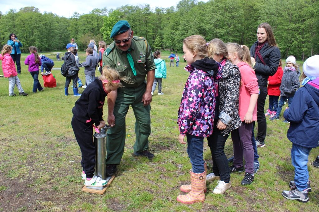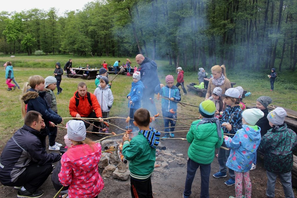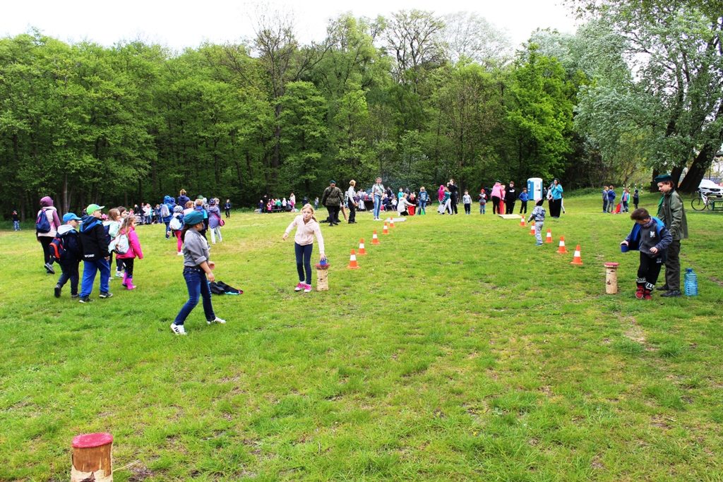 Harcerze tym razem na trasie rajdu przygotowali dzielnym uczniom cztery punkty kontrolne, na których należało: ułożyć wielkie drewniane puzzle, posortować odpadki, wykazać się celnością w strzelaniu z pistoletu pneumatycznego do tarczy oraz w rzucie do celu, aż wreszcie pokonać tor sprawnościowy. Ostatnią atrakcją było oczywiście pieczenie kiełbasek na ognisku. Zabawa była świetna, a i emocji na torze sprawnościowym nie zabrakło. Niestety w tym roku pogoda nie rozpieszczała, choć na szczęście udało się uniknąć deszczu. Miło nam było oglądać radosne buzie dzieciaków a słowa podziękowania nauczycieli były potwierdzeniem udanej zabawy. Do zobaczenia za rok.