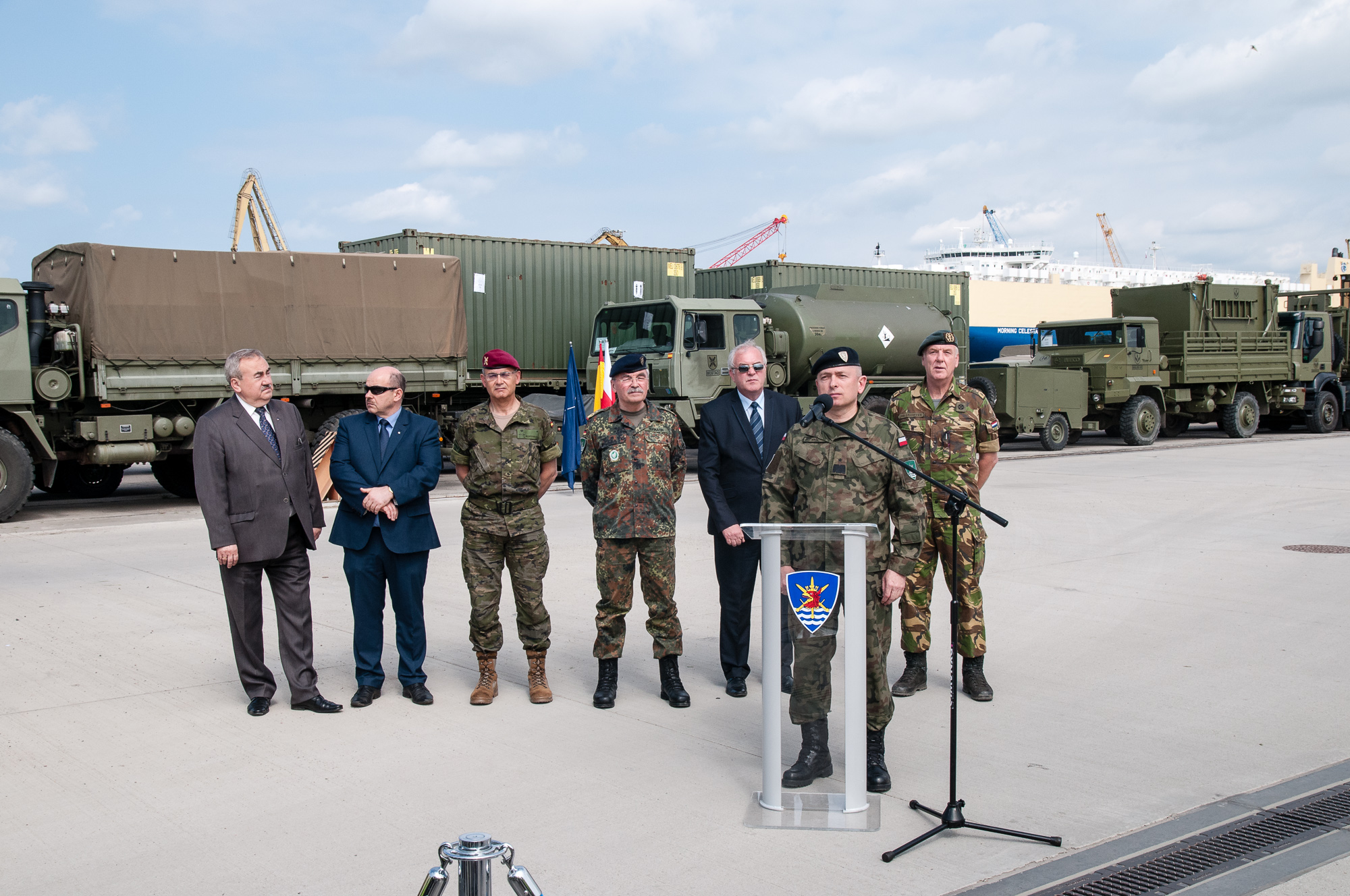 18 maja ponad 400 sztuk sprzętu wojskowego Sił Bardzo Wysokiej Gotowości – zwanych również „szpicą” NATO – przypłynęło do Szczecina z Hiszpanii na pokładzie statku „Morning Celesta”. Operacja odbyła sie w ramach ćwiczenia „Brilliant Jump 2016”, które trwa od 17 maja na terenie Polski (Szczecin, Wrocław, Żagań). Wielonarodowy Korpus Północno-Wschodni ze Szczecina jest odpowiedzialny za proces rozładunku i przemieszczenia sprzętu. W przyszłości ma być również gotowy do dowodzenia tzw. „szpicą”.