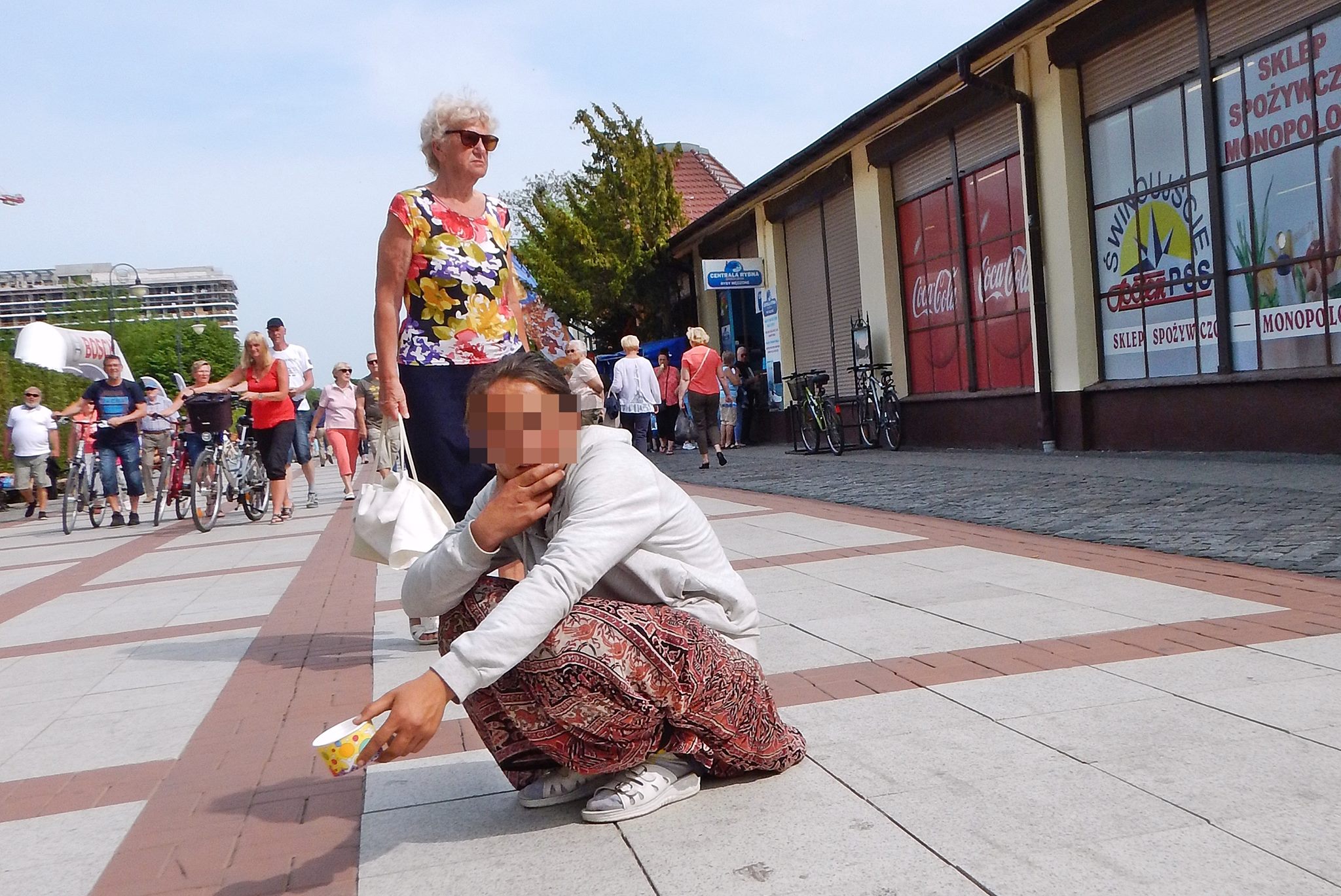 Niedzielne popołudnie. Na promenadzie kuca kobieta w spódnicy w brązowe wzory. Przed sobą nie ma żadnej kartki. Śmiało wyciąga papierowy kubek po lodach. Kilka minut wcześniej razem z dwoma innymi „żebraczkami” wyszła z samochodu na rumuńskich tablicach rejestracyjnych. Po 5 minutach ktoś zadzwonił po policję. Patrol przyjechał błyskawicznie. Policjanci szybko wytłumaczyli kobiecie, gdzie należy szukać pomocy jeśli nie ma pieniędzy na swoje utrzymanie.