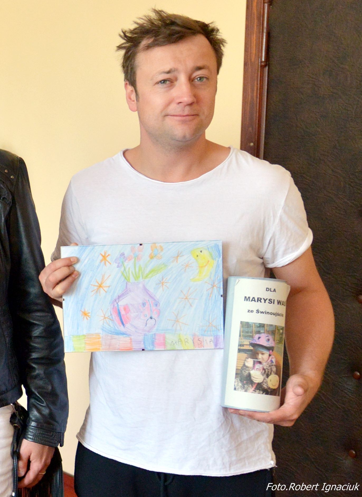 Gdy dowiedział się, że w Świnoujściu mieszka dziewczynka, która potrzebuje pieniędzy na kosztowną operację, zapytany o pomoc, od razu powiedział „tak”. W czwartek podczas koncertu zagranego na potrzeby produkcji filmowej, zbierał do puszki środki na leczenie 6-letniej Marysi Waś. Dziś spotkał się z dziewczynką i w podziękowaniu otrzymał od niej rysunek. Był wyraźnie wzruszony, aż zaszkliły mu się oczy.