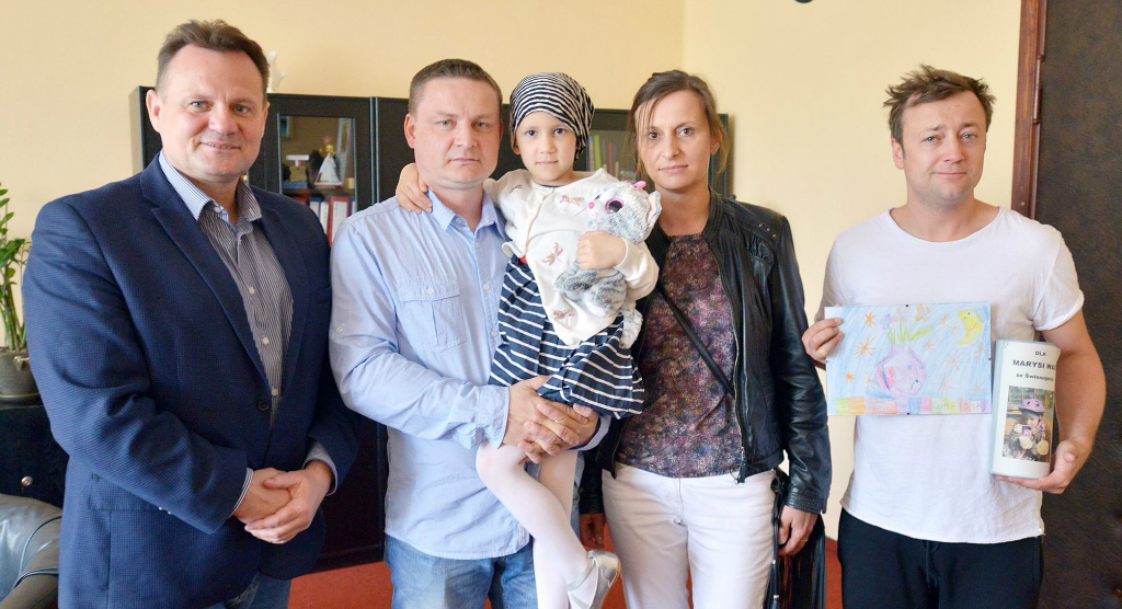 13282828_670683209773938_834669715_oArtysta spotkał się w piątek z rodziną Wasiów. Spotkanie było bardzo spontaniczne. Artysta zszedł na kilkadziesiąt minut z planu filmowego. Niespodzianką była obecność małej Marysi. Dziewczynka chciała poznać Czesława, dla którego leżąc w szpitalu w Kolonii narysowała filetowy wazon pełen kolorowych kwiatów na tle błękitnego nieba, gwiazd i uśmiechniętego księżyca. Chociaż spotkanie zorganizowano w budynku magistratu, miało bardzo osobisty charakter. Czesław Mozil był bardzo przejęty sytuacją Marysi, a jak później przyznał, pomoc była dla niego obowiązkiem. Oprócz rysunku, dostał także od Pawła Sujki pamiątkowy album o Świnoujściu.