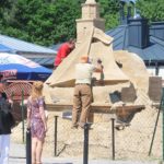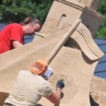 Jak już wiecie z portalu swinoujskie.info przy promenadzie dwójka rzeźbiarzy tworzy figurę latarni morskiej i żaglówki. Na jej żaglu będzie herb Świnoujścia. Podglądaliśmy dzisiaj artystów przy pracy. Piaskowe cudo jest już niemal gotowe.