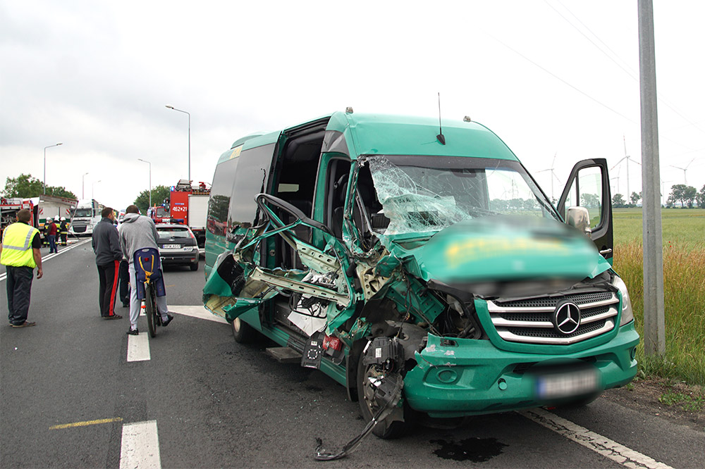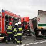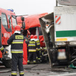 Bus przewoził 12 pasażerów. Po zderzeniu jeden wymagał udzielenia pomocy medycznej. – Działania strażaków polegały na zabezpieczeniu miejsca zdarzenia, podaniu 1 prądu piany gaśniczej ciężkiej do komór silników samochodów ciężarowych oraz w bezpośrednie ich otoczenie, udzieleniu pomocy medycznej osobom poszkodowanym z urazami głowy i kończyn górnych oraz sprawdzeniu funkcji życiowych u kierowcy zakleszczonego w samochodzie ciężarowym jednocześnie z wykonywaniem do niego dostępu z użyciem sprzętu stabilizacyjnego pojazd oraz sprzętu hydraulicznego – informuje kpt.Michał Wiaderski z KPPSP Kamień Pomorski.