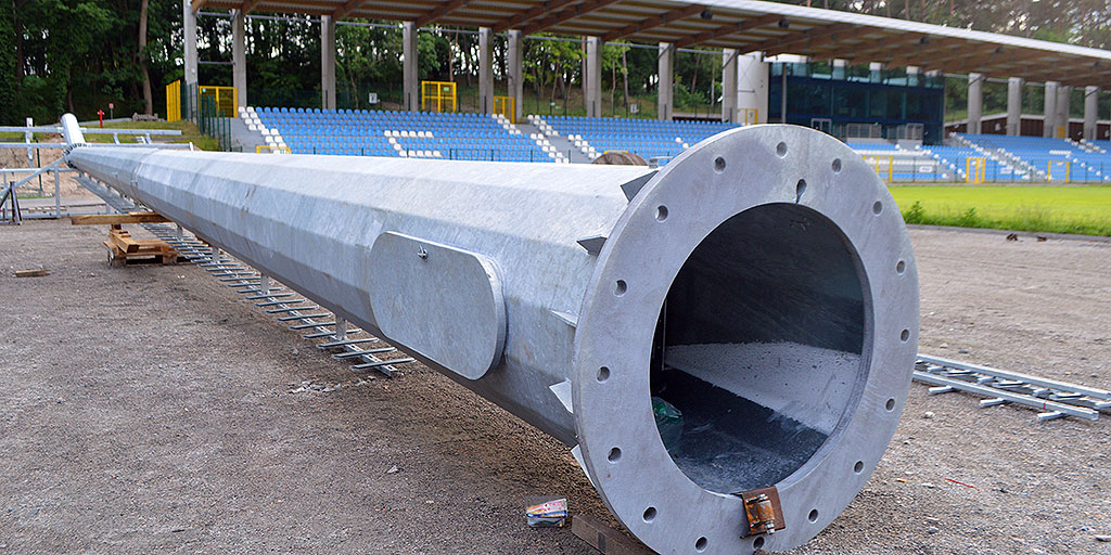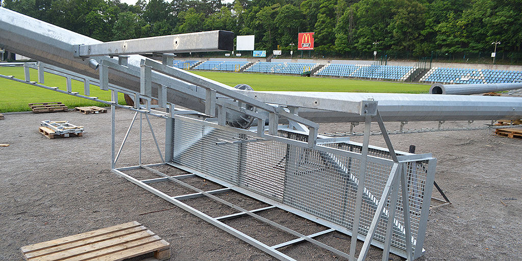 Na stadion przy ul. Moniuszki przywieziono wielkie słupy oświetleniowe. Już wkrótce na masztach zostaną powieszone jupitery. Maszty są cztery – będą ustawione w narożnikach boiska. Inwestycja oświetlenia stadionu nie jest skierowana tylko dla potrzeb piłkarzy, ale także lekkoatletów. art-jupiteryNiebawem zostanie położona bieżnia lekkoatletyczna, a firma TAMEX Obiekty Sportowe S.A. za kwotę około 960 tysięcy złotych zobowiązana jest do września bieżącego roku do zamontowania,  wraz z infrastrukturą energetyczną, czterech  25 metrowych masztów, które dadzą oświetlenie o natężeniu nie mniejszym niż 200 Luxów.