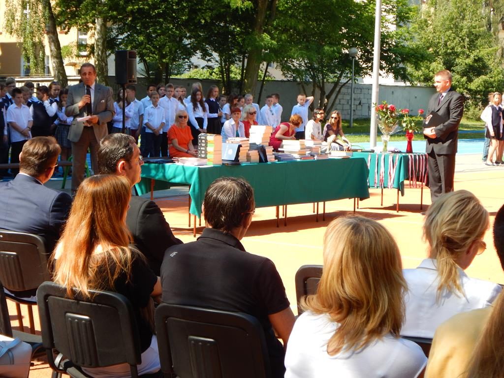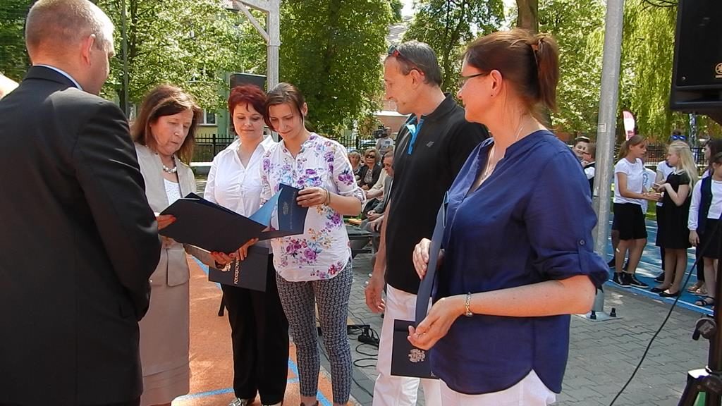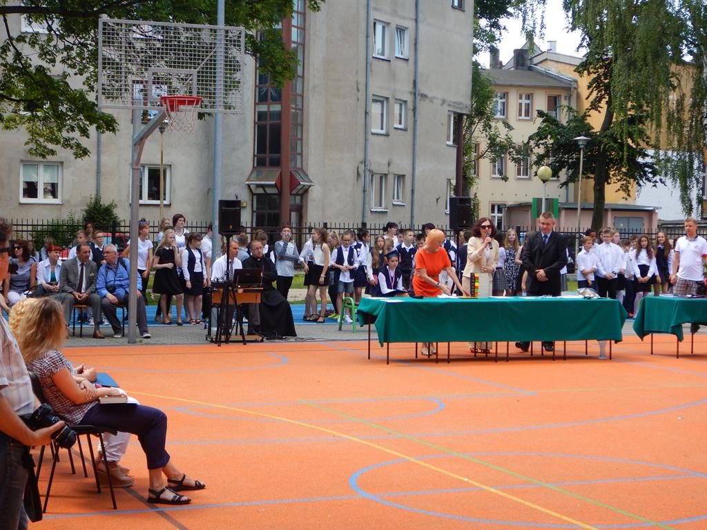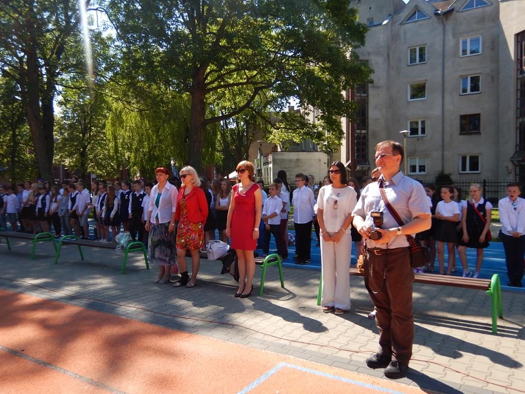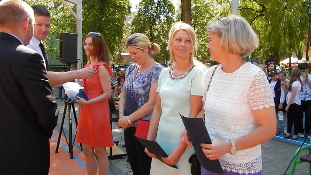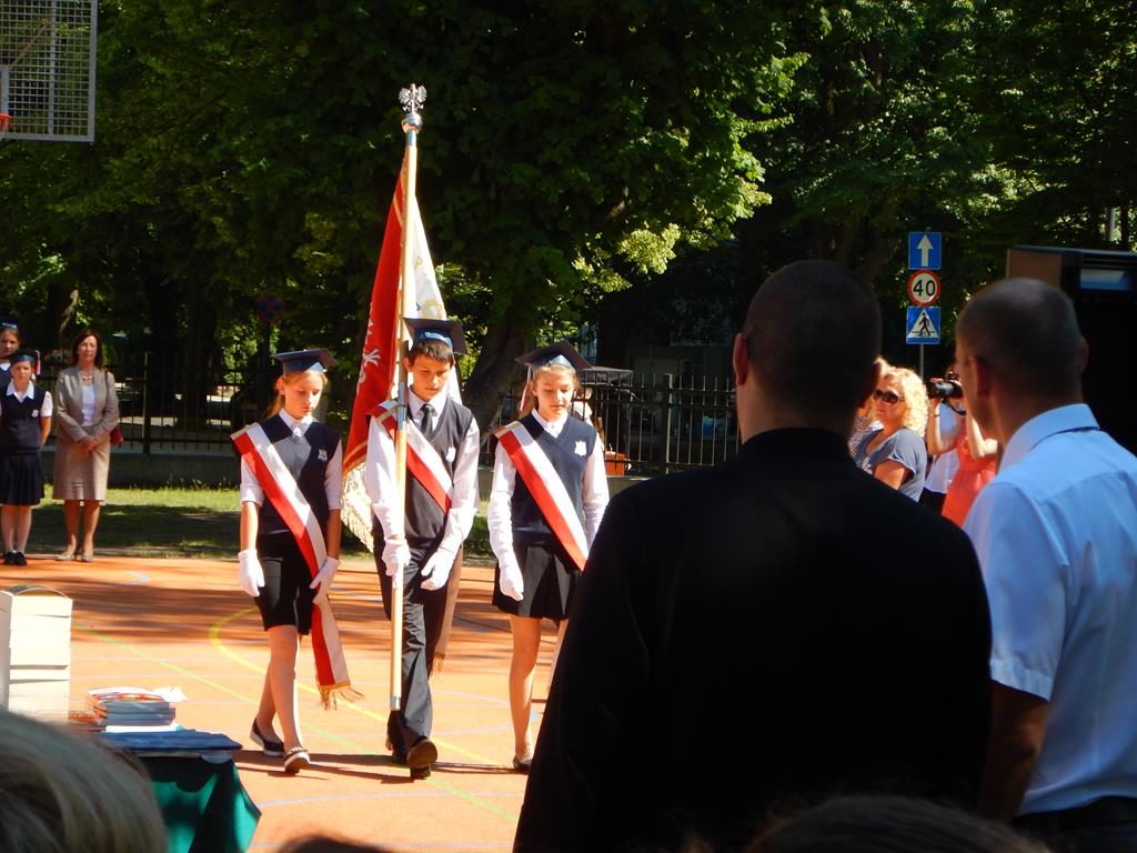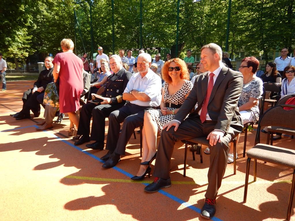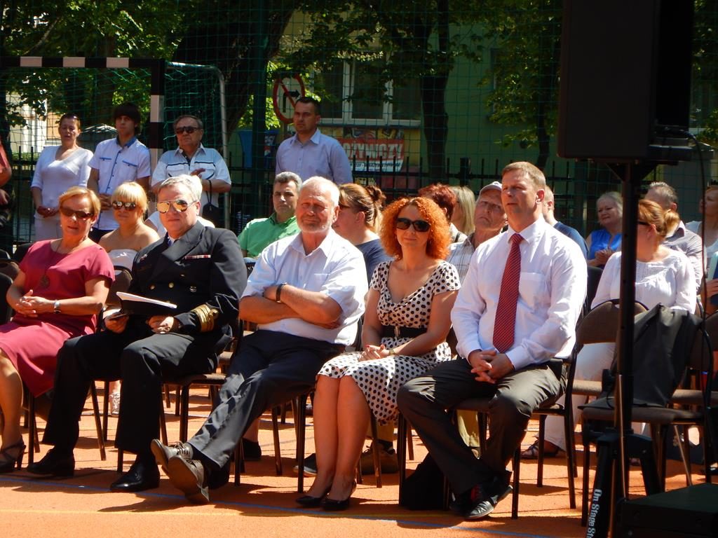 Dorośli starali się, aby przemówienia były jak najkrótsze, bo skwar na boisku szkolnym dawał się we znaki dzieciom. Co chwila komuś było słabo. Z fachową pomocą przyszedł zastępca prezydenta Paweł Sujka. Schładzał słabnącym uczniom głowy zimną wodą.