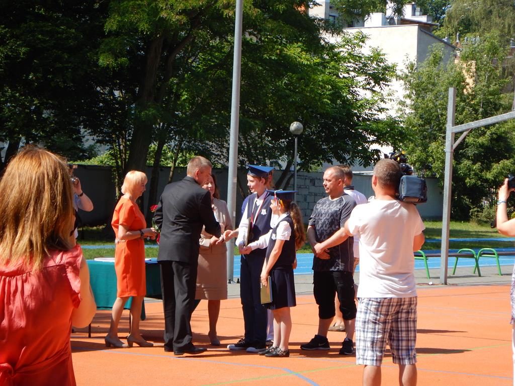 – Nie żebym nie lubił szkoły, ale wakacje to wręcz kocham – powiedział jeden z uczniów Szkoły Podstawowej nr 1 im Marynarki Wojennej RP, gdzie dziś odbyło się miejskie zakończenie roku szkolnego 2015/2016. Na szkolnym boisku zebrali się nie tylko uczniowie i nauczyciele. Było także wielu rodziców, władze miasta z prezydentem Januszem Żmurkiewiczem i Dziekan Dekanatu Świnoujście ks. kan. Piotr Superlak.