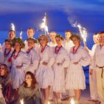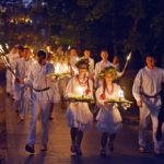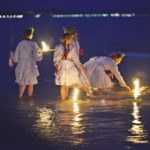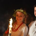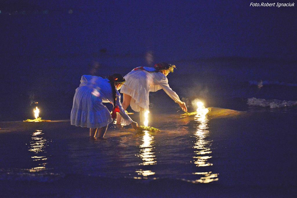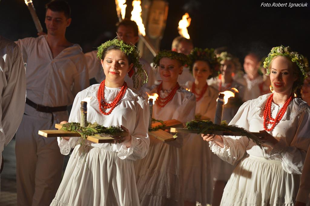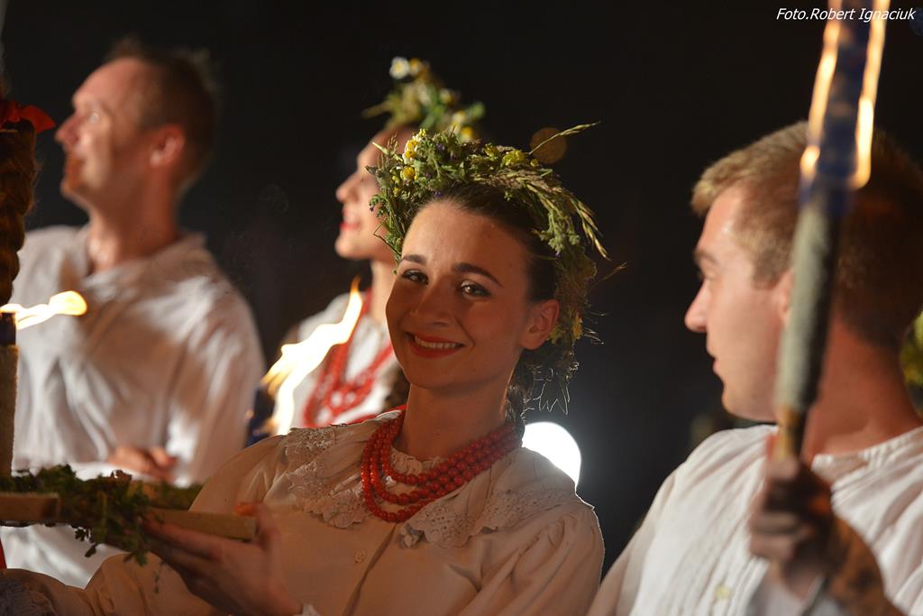 13499630_684599801715612_1733967831_oNiegdyś Noc Kupały była wielką szansą na zdobycie ukochanego. Młode niewiasty plotły wianki z kwiatów i magicznych ziół, wpinały w nie płonące łuczywo i w zbiorowej ceremonii ze śpiewem i tańcem powierzały wianki falom rzek i strumieni. Trochę poniżej czekali już chłopcy, którzy – czy to w tajemnym porozumieniu z dziewczętami, czy też liczący po prostu na łut szczęścia – próbowali wyłapywać wianki. Każdy, któremu się to udało, wracał do świętującej gromady, by zidentyfikować właścicielkę wyłowionej zdobyczy.