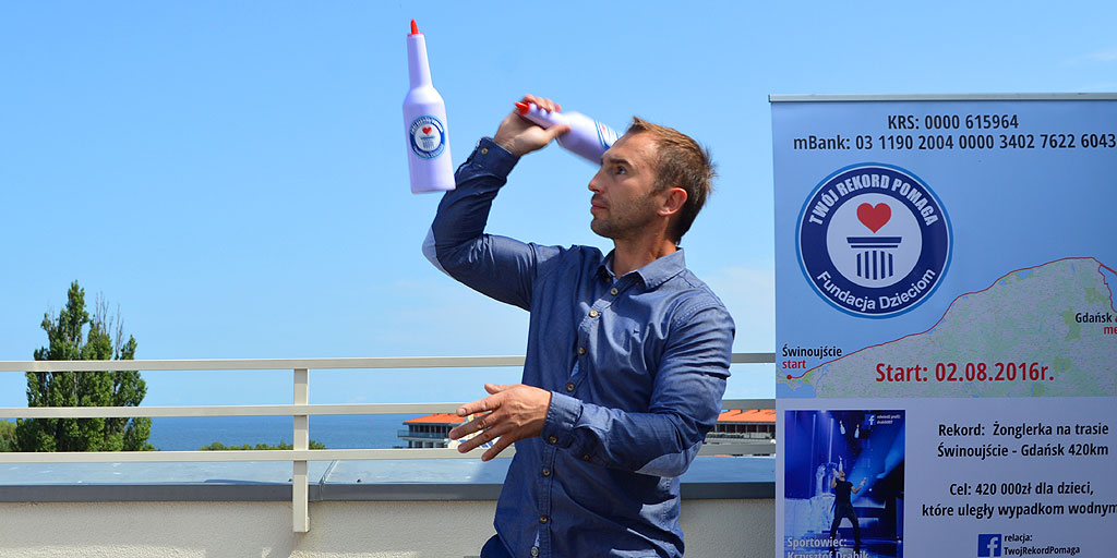 To prawdziwe wariactwo – tak mówi o swoim pomyśle Krzysztof Drabik – barman który w środę przyjechał do Świnoujścia. Stąd wyruszy 2 sierpnia w podróż do Gdańska. Jego wyprawa potrwa 19 dni. Idąc plażą zamierza nieustannie żonglować butelkami. Wszystko dla osób poszkodowanych w wypadkach w wodzie.