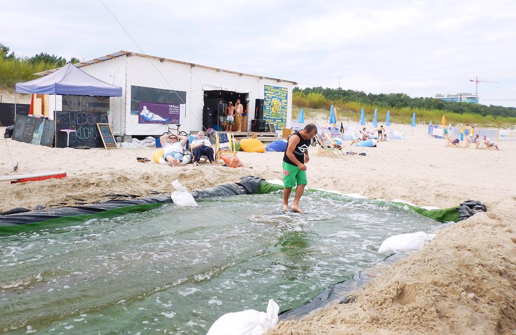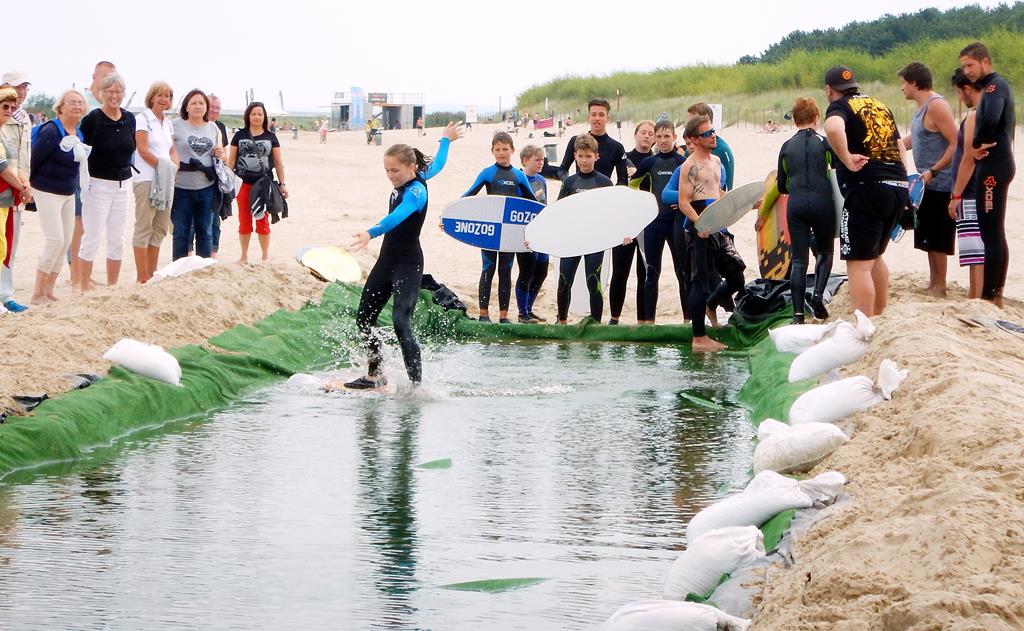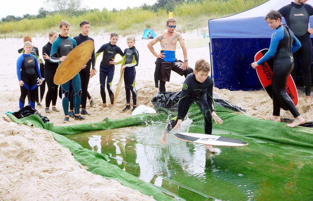 Skimboard to sport wodny polegający na ślizgu na specjalnej desce po fali lub płytkiej warstwie wody. W sobotę wszyscy chętni mogli spróbować tej zabawy na świnoujskiej plaży. Chętnych nie brakowało, chociaż szkoda, że organizatorzy nie pochwalili się nią w mediach lokalnych przed weekendem.  Impreza o nazwie Uznam Surf Contest Świnoujście organizowana jest w okolicy pomiędzy wiatrakiem a wejściem al. Interferie. Potrwa do niedzieli.