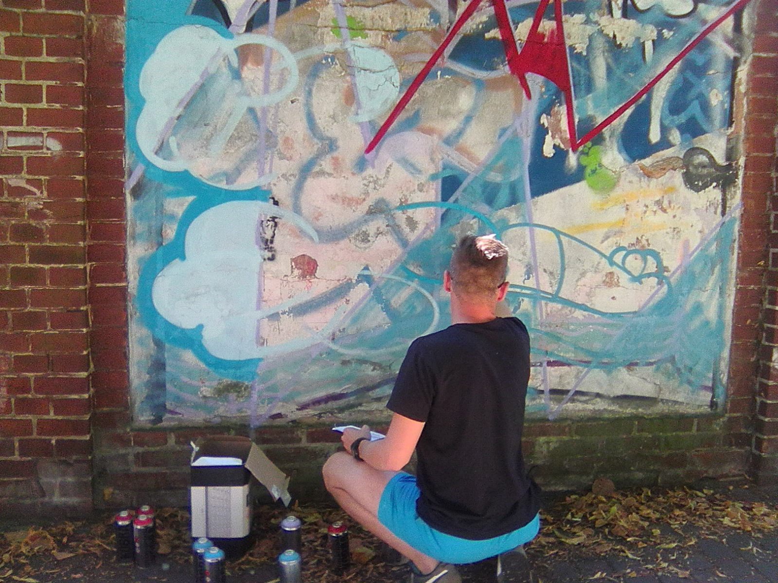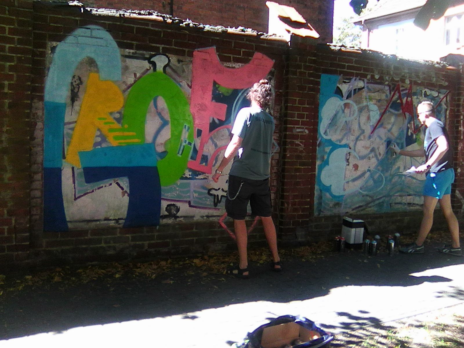 Ogrodzenie budynku dawnego koszarowca przy ul. Wyspiańskiego nie jest piękne. Mur od wielu lat stoi pobazgrany. Artyści, którzy przyjechali na Famę postanowili go trochę ożywić.