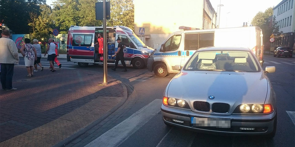 art-wypadekTo cud, że ten wypadek nie skończył się tragicznie. Kierujący bmw jechał wzdłuż ulicy Piastowskiej. Zbliżając się do przejścia dla pieszych nie zauważył kobiety przechodzącej przez pasy. Jak tłumaczył później policjantom – oślepiło go słońce. Kobieta szła z malutkim dzieckiem, które niosła w chuście. Uderzenie auta spowodowało, że upadła na jezdnię. Kobieta wstała i chciała odejść mówiąc, że nic jej się nie stało. Przechodnie jednak nie pozwolili jej iść. Wezwano pogotowie ratunkowe i policję. W zdarzeniu drogowym najbardziej ucierpiał pies, którego kobieta trzymała na smyczy.